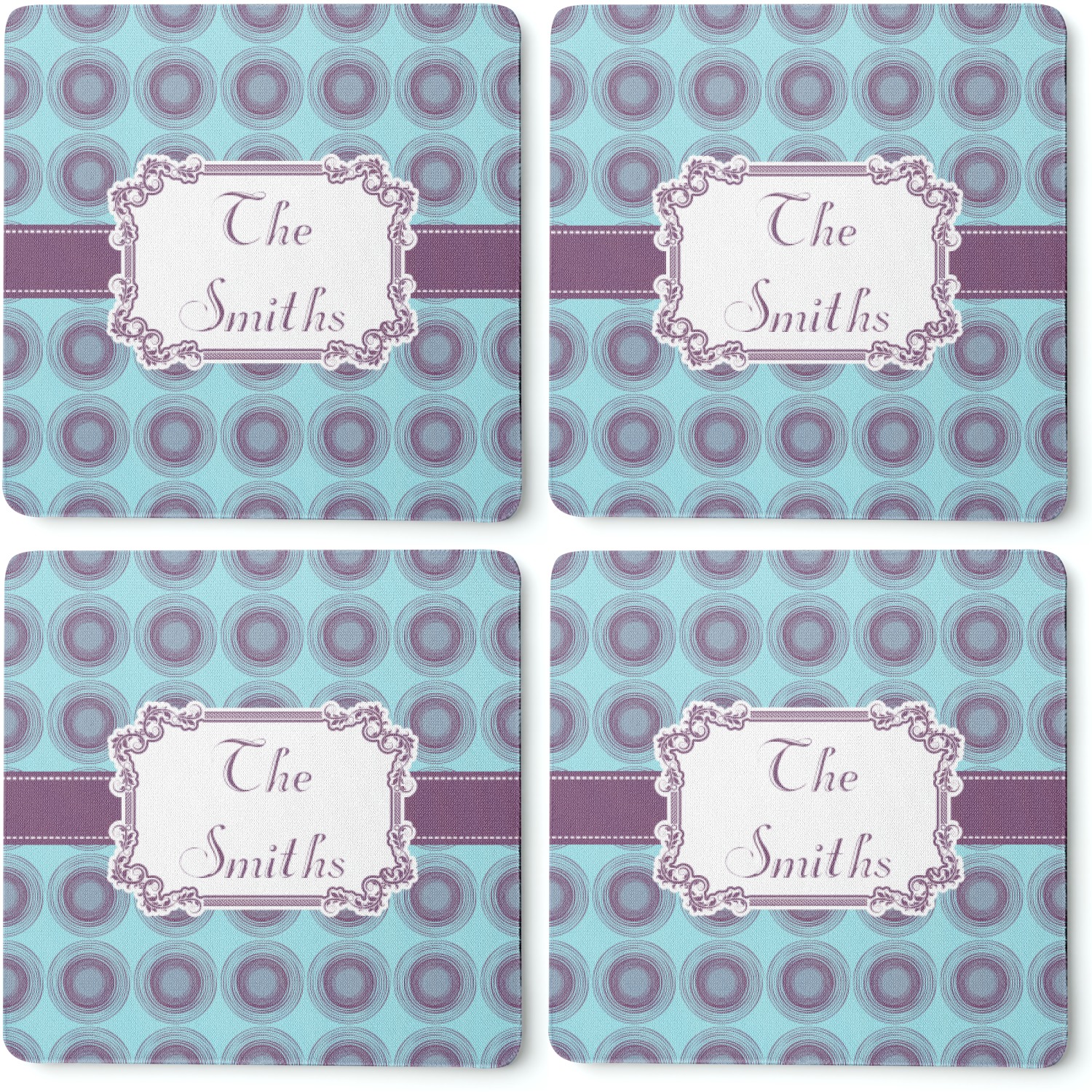 Replace your boring, run-of-the-mill coasters with a set of 4 personalized coasters! When personalized, these coasters will protect your beloved surfaces while adding to your home's decor! Thanks to your coasters bright colors and unique design, your guests will be eager to use them!