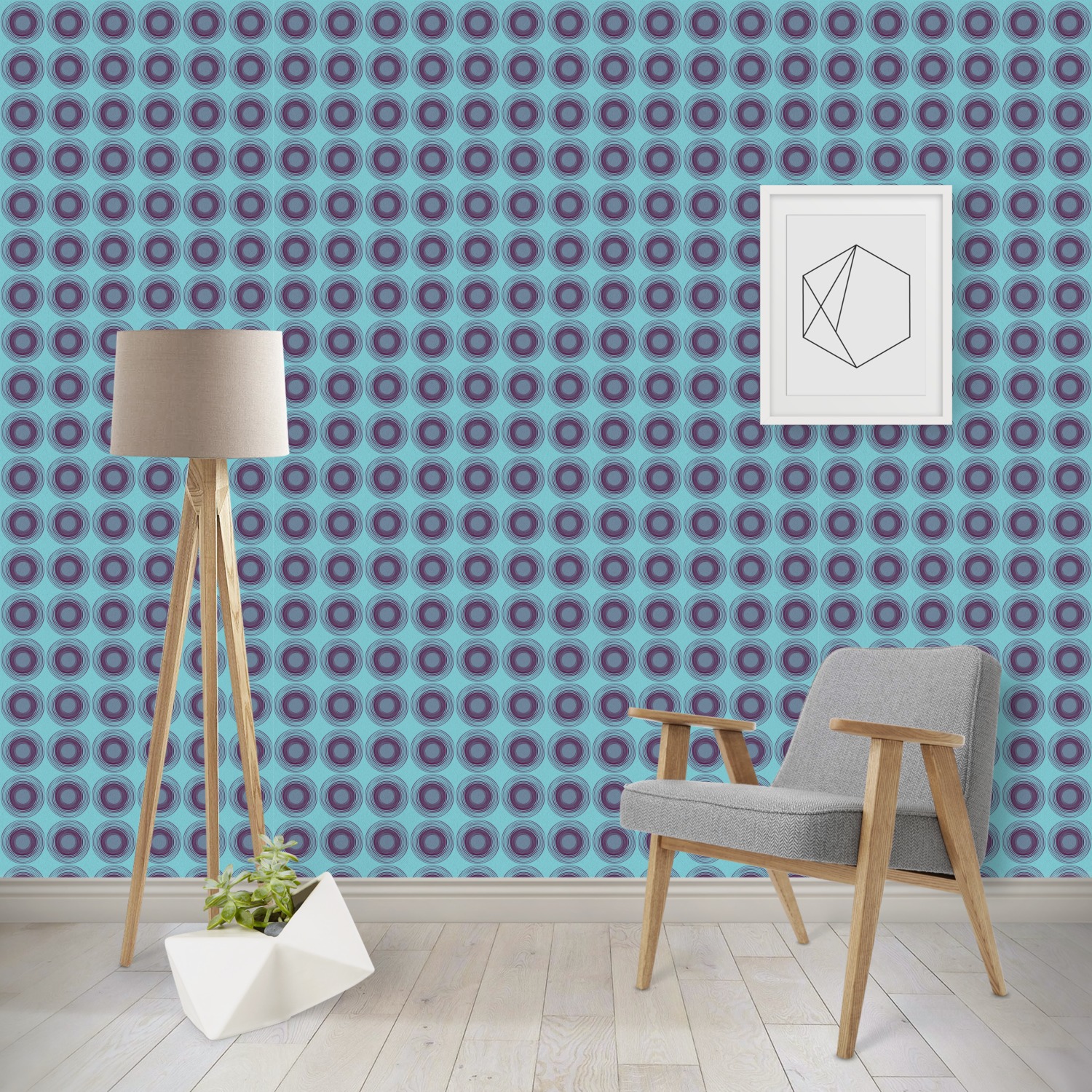 Not a polka dot person but want to add dimension to your design? The Concentric Circles pattern is something you must try! In bright teal and dark violet, this design has a mesmerizing retro spin that's sure to freshen up any dull room.