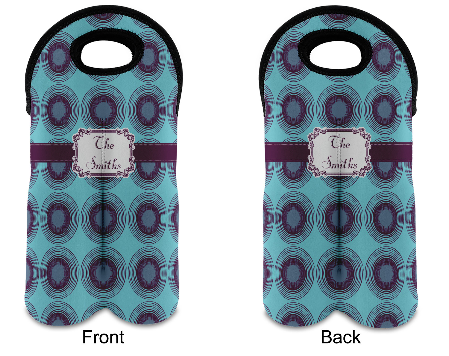 These tote bags are insulated to keep the bottles cold and have a stitched separation down the middle and double handles to keep the two bottles safe and secure during travels.