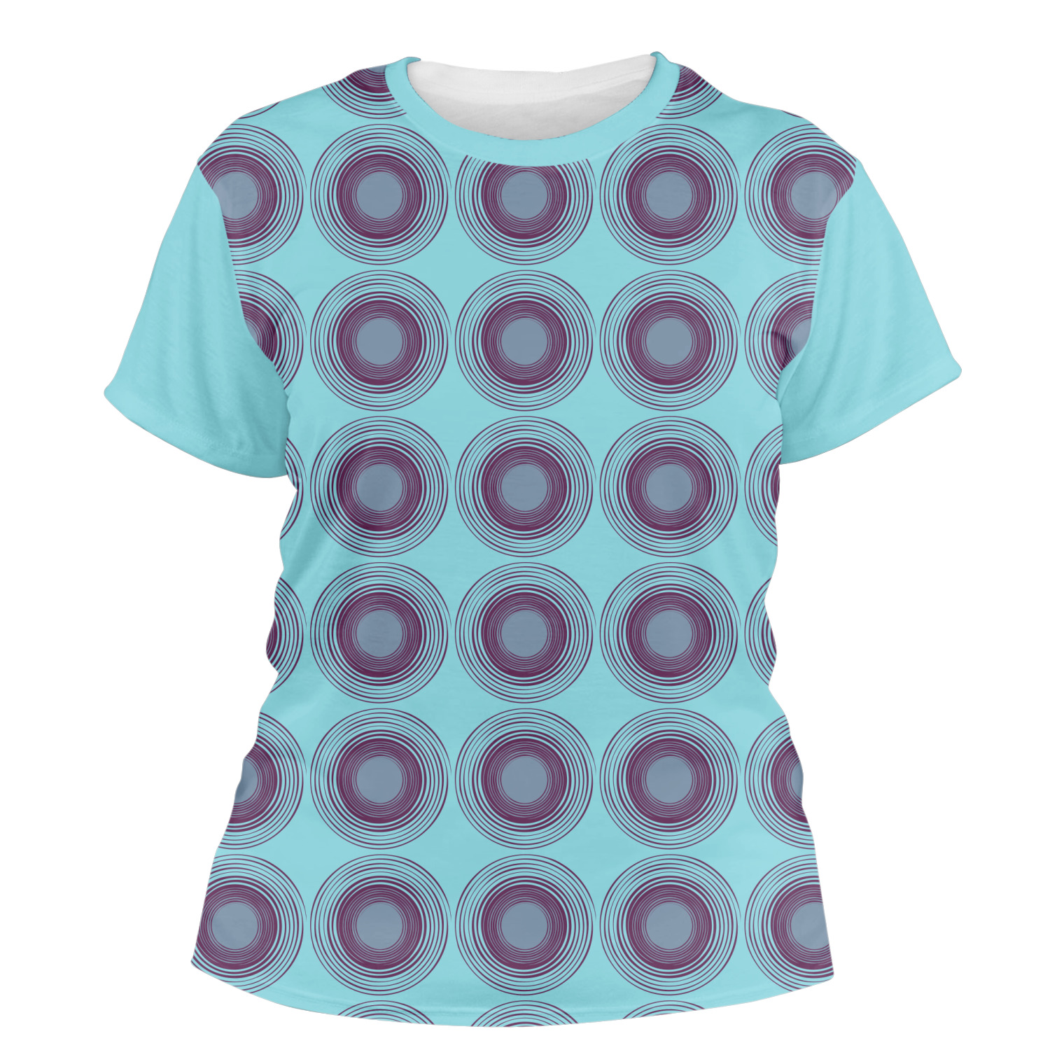 Our womens t-shirts are a lovely jersey knit polyester. They come in 6 different sizes ranging from X-Small to XX-Large. These shirts are your basic comfy crew neck t-shirts that look good on anyone. You are able to personalize the sleeves, front, AND back! Isn't that awesome?! Make everything one color or all different. The choice is yours.