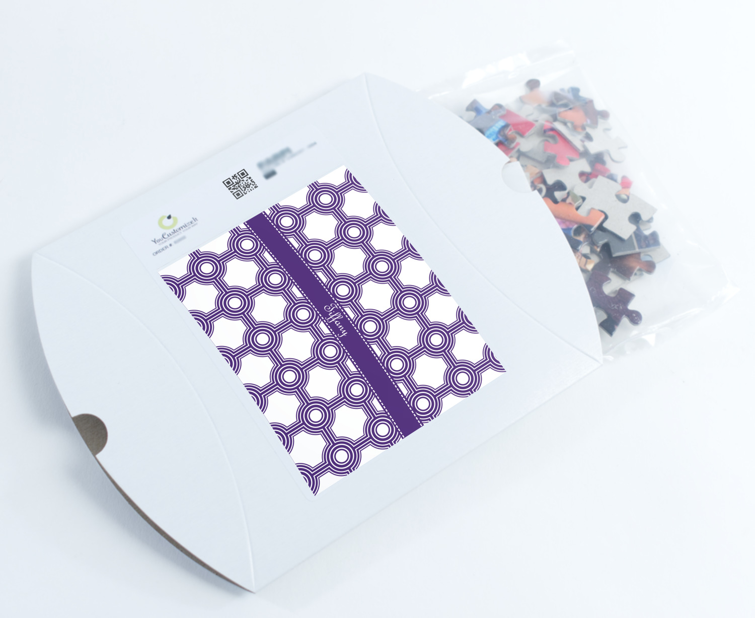 You can also upload your logo or art that you or your kids drew. To create more challenging jigsaw puzzles, you can create a pattern from with your logo or artwork. You can also add other elements such as text or personalization.