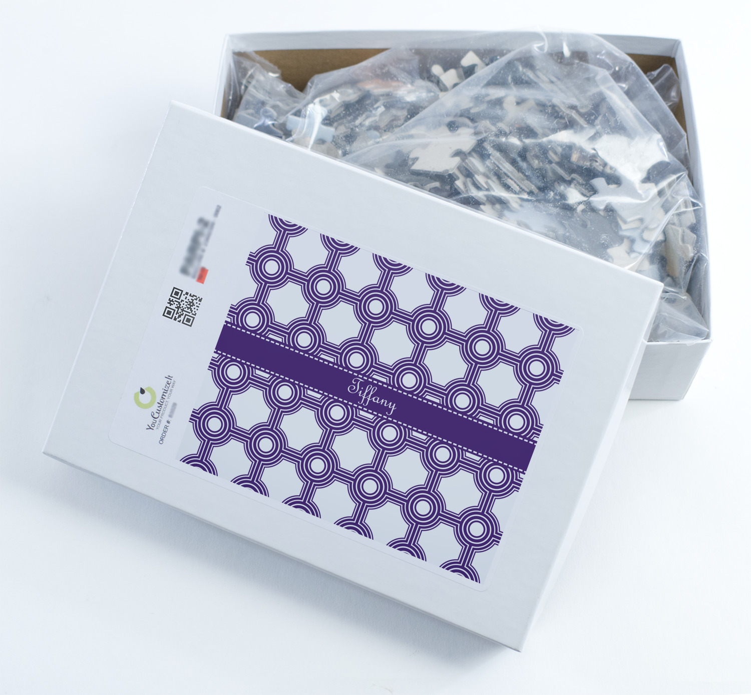 You can also upload your logo or art that you or your kids drew. To create more challenging jigsaw puzzles, you can create a pattern from with your logo or artwork. You can also add other elements such as text or personalization.