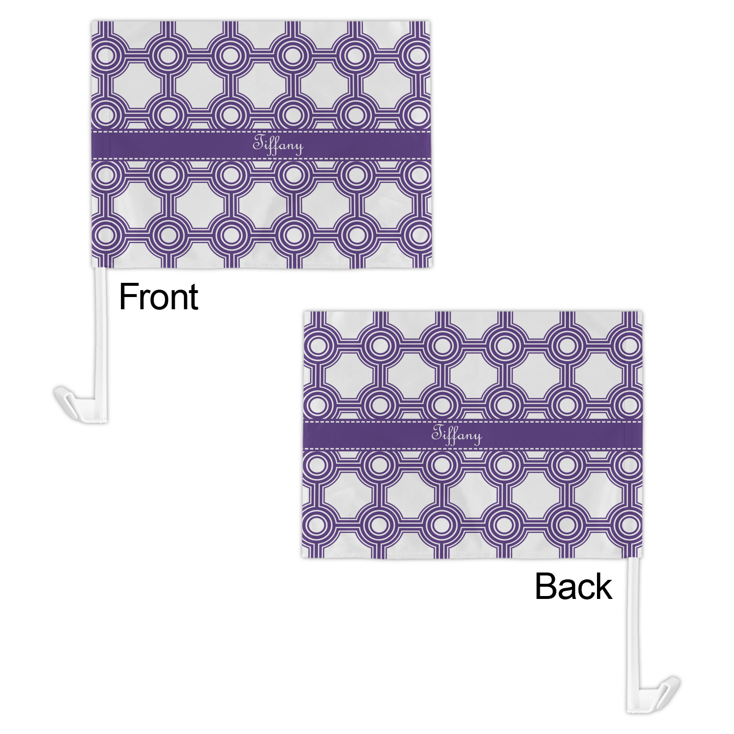 Our personalized flags are made from a durable, yet lightweight cloth that will proudly bear your logo or design of choice, while withstanding the outside elements. We have two size options - 8" x 11" and 11" x 15". Both come with a flag pole which includes a clip that secures the pole to the side window, whether it is rolled up or down. The flags are printed on both sides to display your design from all directions.