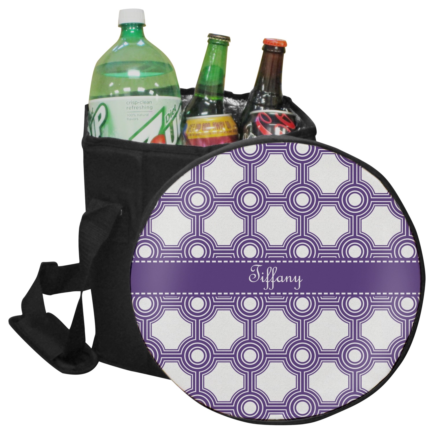 Our collapsible insulated coolers feature a unique six-sided hexagon shape, are lightweight, durable and can be turned into a seat. This cooler is fully insulated with silver foil lining to keep food and drinks hot or cold, and has a 12-quart capacity. Although this cooler collapses for easy transport, hidden inside are composition panels made of sturdy wood that give the frame strength and allow this cooler to be used as a seat. Simply sit down on the personalized cover and give your legs a break! (Maximum weight capacity of 200 pounds.)