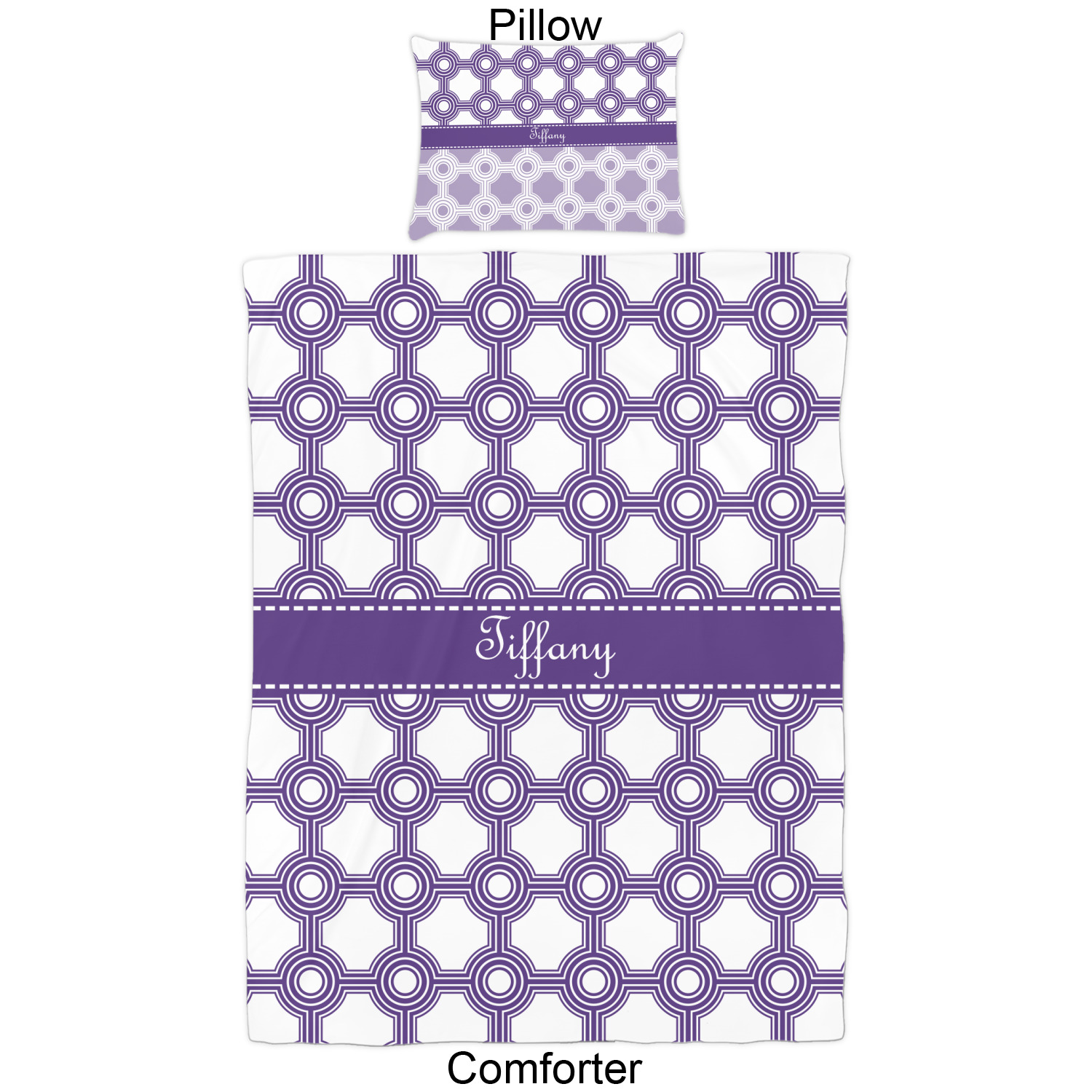 We have hundreds of different design templates for you to choose from Each design can be customized to your exact specifications. Not only can you customize the comforter, but you can also customize each pillow sham e.g. for a queen comforter set you have have Mr & Mrs pillow shams with the last name on comforter.