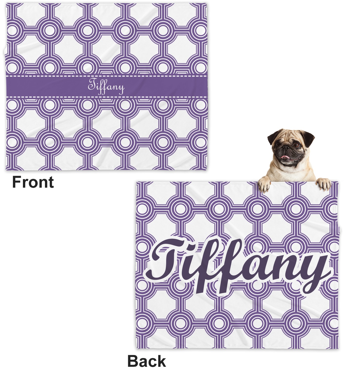 These dog blankets are crafted from a gentle, soft-to-the-touch, minky material. We print your customizations, either matching or differing, on both the top and underside of the blanket. These personalized dog blankets are available in two sizes: regular and large. Our regular size, at 40" x 30", accommodates small and some medium size dogs. At 60" x 50", our large dog blanket is a better fit for bigger breeds. Though specialized for dogs, these blankets still make a thoughtful gift for your favorite feline, or any other pet in mind!