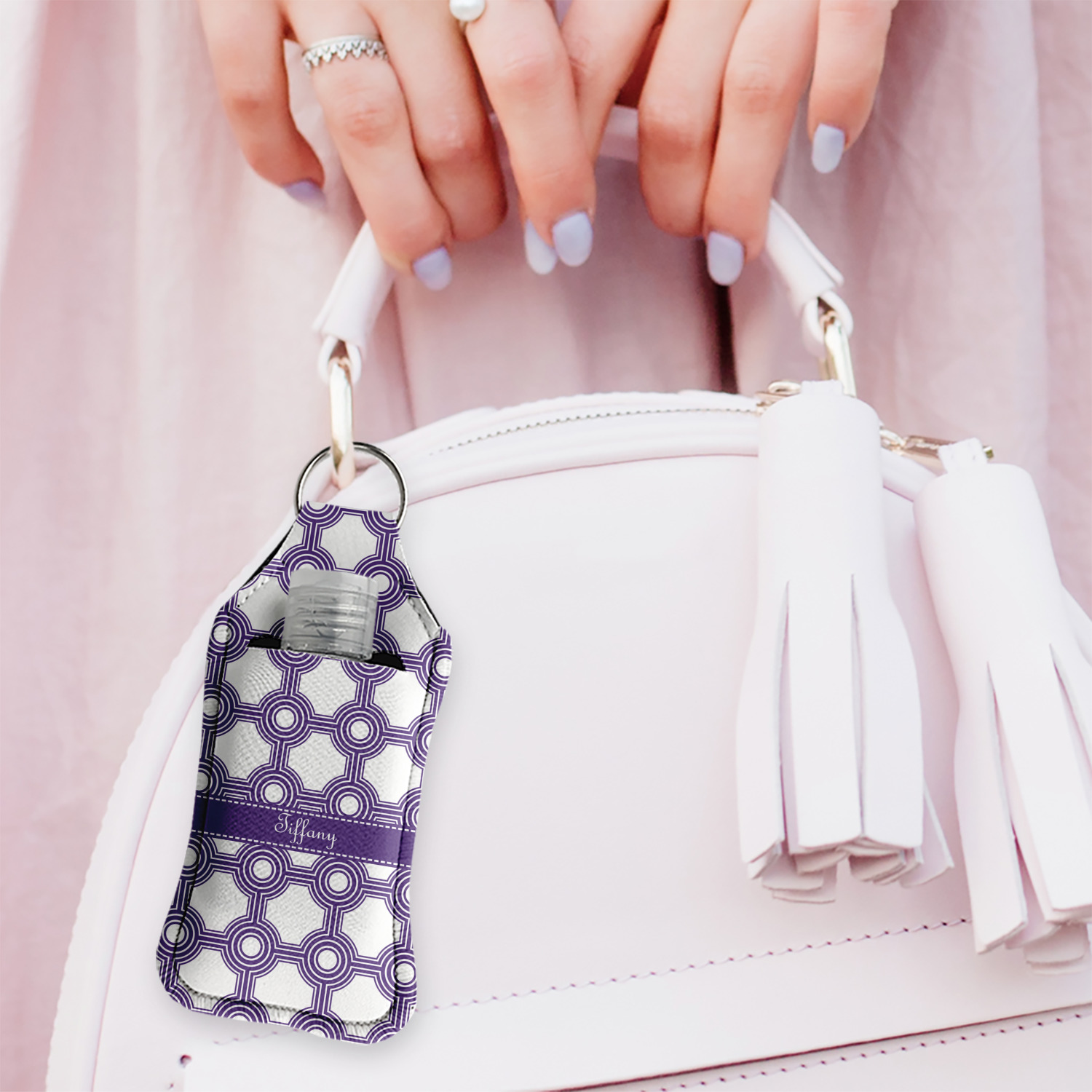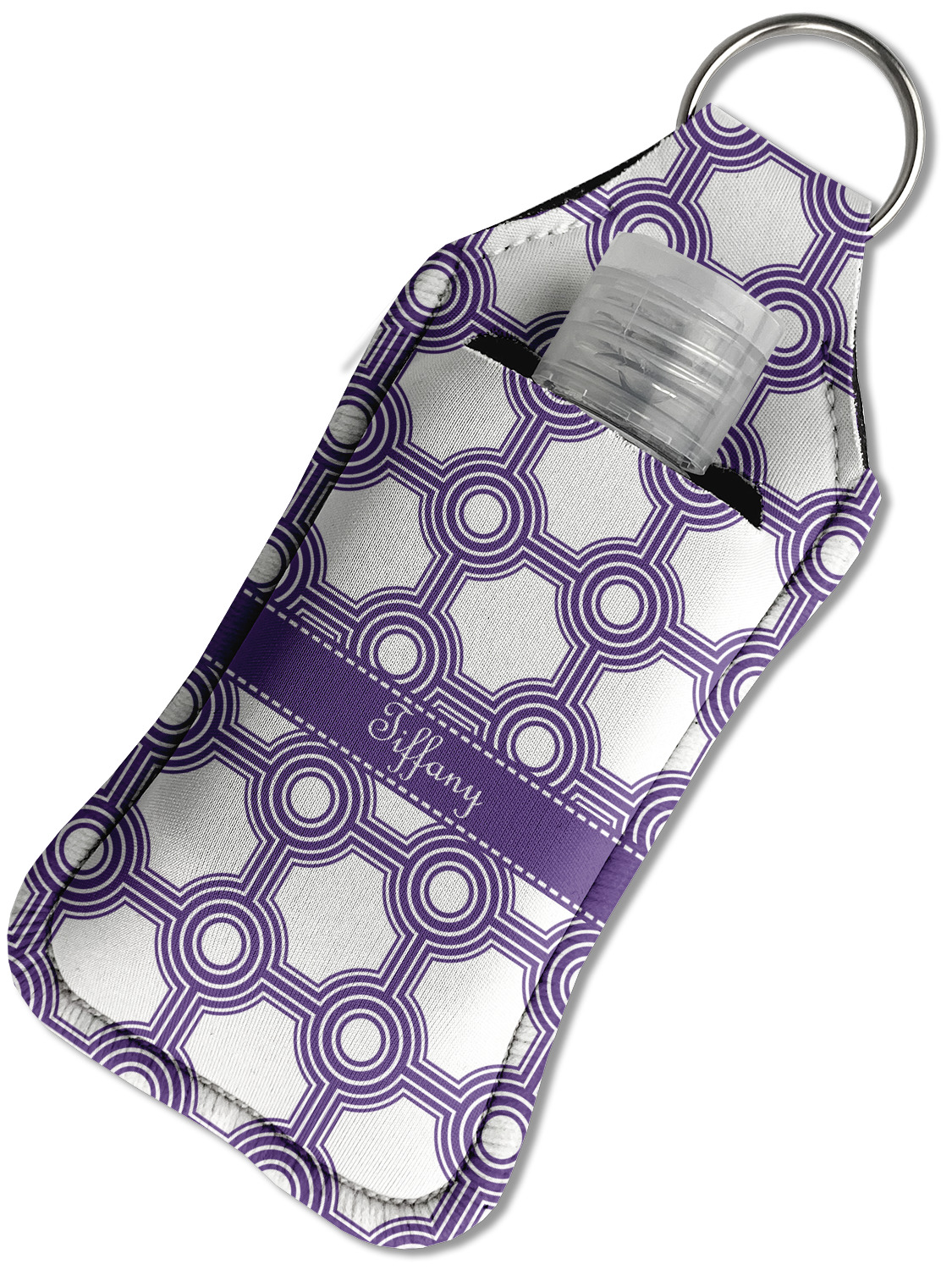 Each hand sanitizer holder comes with its own empty travel-sized, refillable hand sanitizer sure to fit snug in your customized sanitizer case! Our hand sanitizer cases are a durable, yet soft neoprene material sure to last any daily activities or travel agenda. Customize and personalize a hand sanitizer bottle holder with one of our two sizes - small (4.25" x 2.25") or large (5.5" x 2.5"). Each travel sanitizer holder comes with a keyring for attachment on bags, keys, or more!