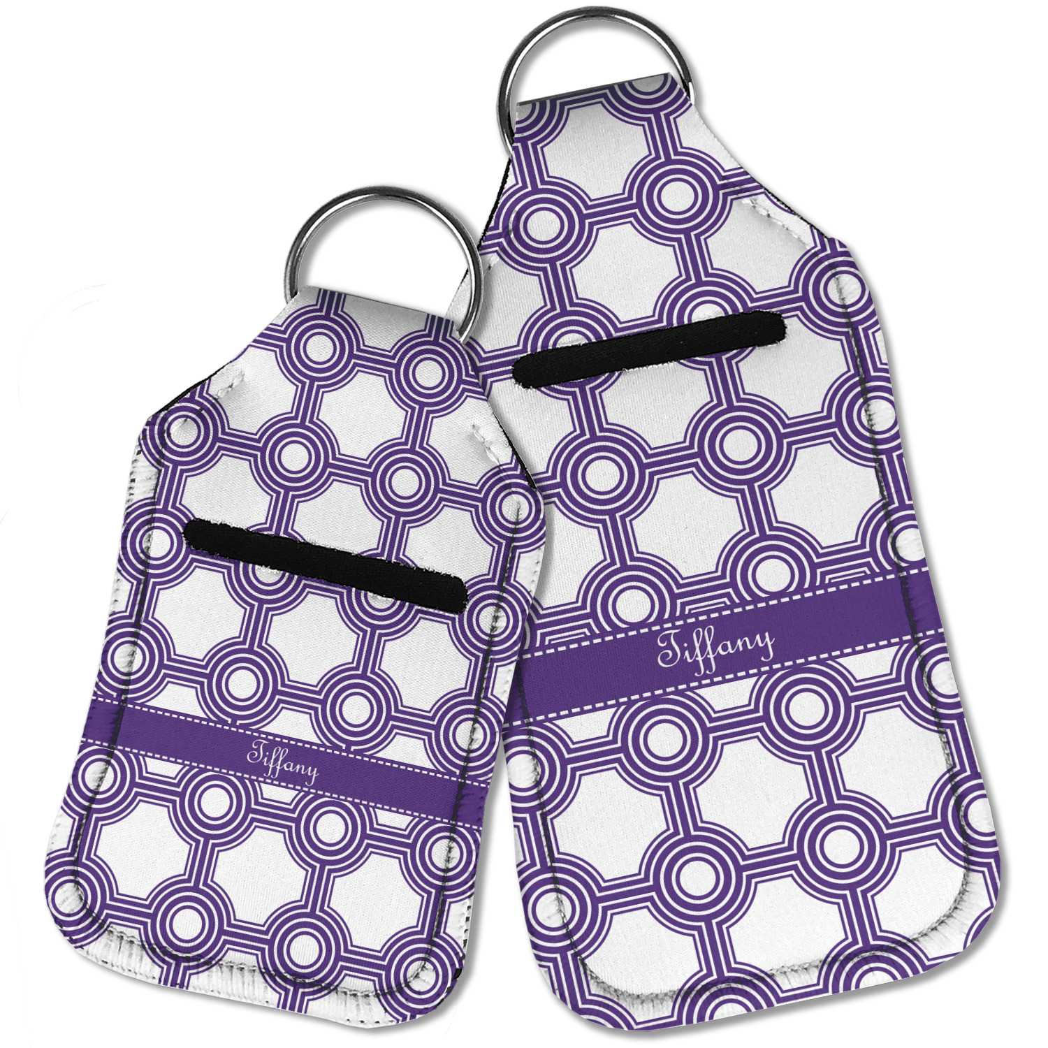 Each hand sanitizer holder comes with its own empty travel-sized, refillable hand sanitizer sure to fit snug in your customized sanitizer case! Our hand sanitizer cases are a durable, yet soft neoprene material sure to last any daily activities or travel agenda. Customize and personalize a hand sanitizer bottle holder with one of our two sizes - small (4.25" x 2.25") or large (5.5" x 2.5"). Each travel sanitizer holder comes with a keyring for attachment on bags, keys, or more!