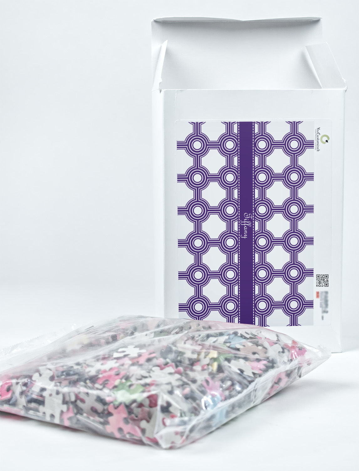 You can also upload your logo or art that you or your kids drew. To create more challenging jigsaw puzzles, you can create a pattern from with your logo or artwork. You can also add other elements such as text or personalization.