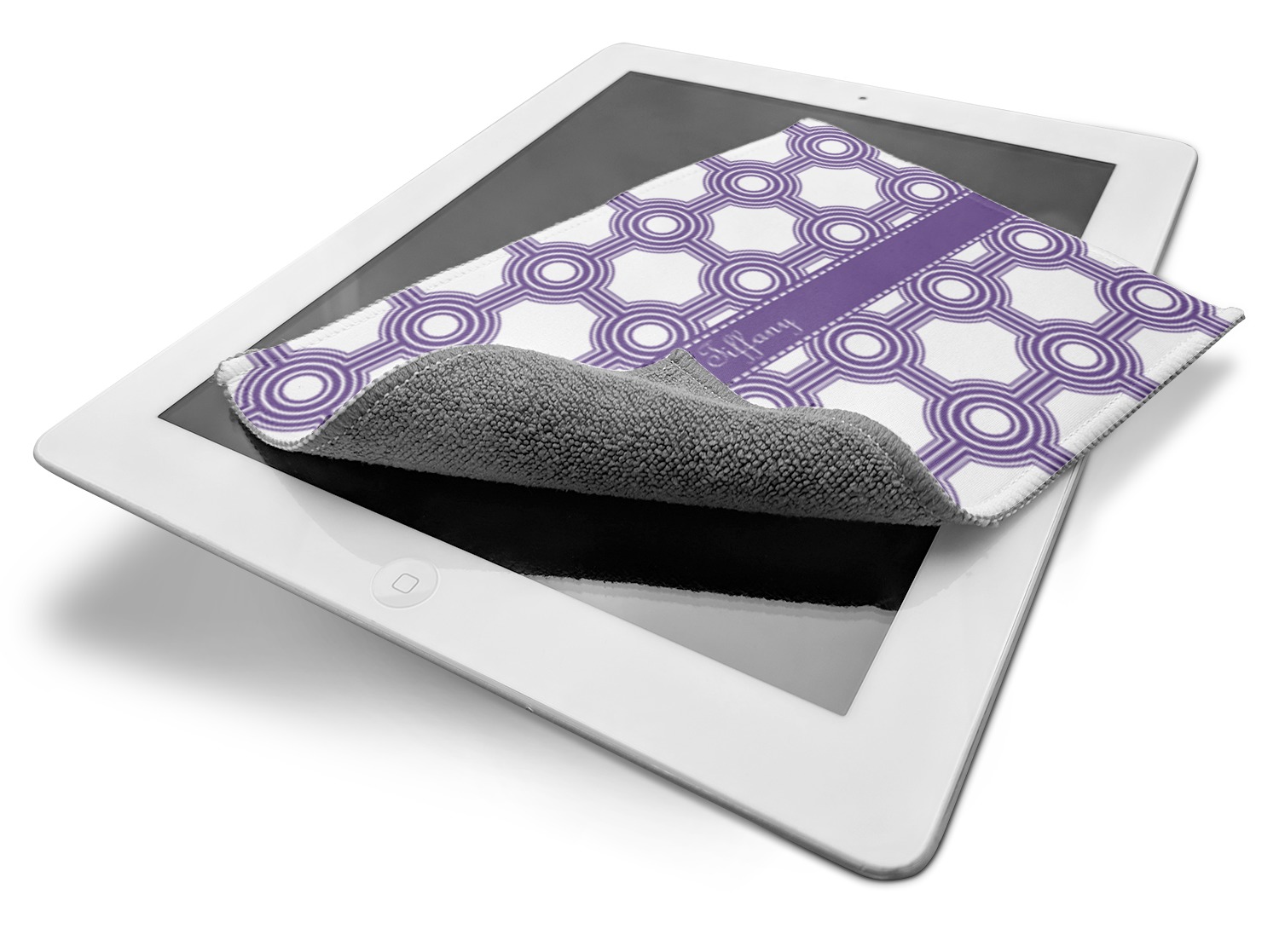 The back of this cleaning cloth is made from a gentle, grey microfiber material, that is masterful at removing smudges, grease, and fingerprints from lenses or electronic screens. The front side of the screen cleaner displays your personalized design in vibrant color. A beautiful stitch lines the edges and secures the microfiber to the polyester top. We provide you with the option of customizing this screen horizontally or vertically, depending on your preferences.