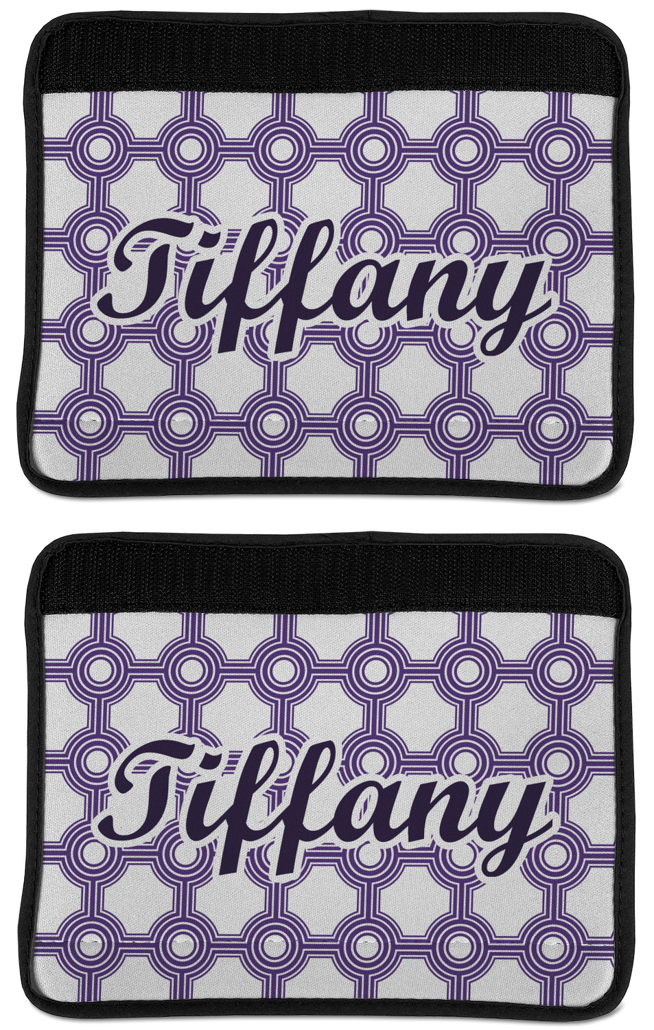 Made from neoprene, our seat belt strap covers wrap around the belt itself and have a Velcro tab for easy attachment and closure. The belt's edges are trimmed with a black polyester for a secure finish. Each cover is 9.5 by 7 inches when open and 9.5 by 2.5 inches when closed. We print your personalized design on the face of the seat belt pad.