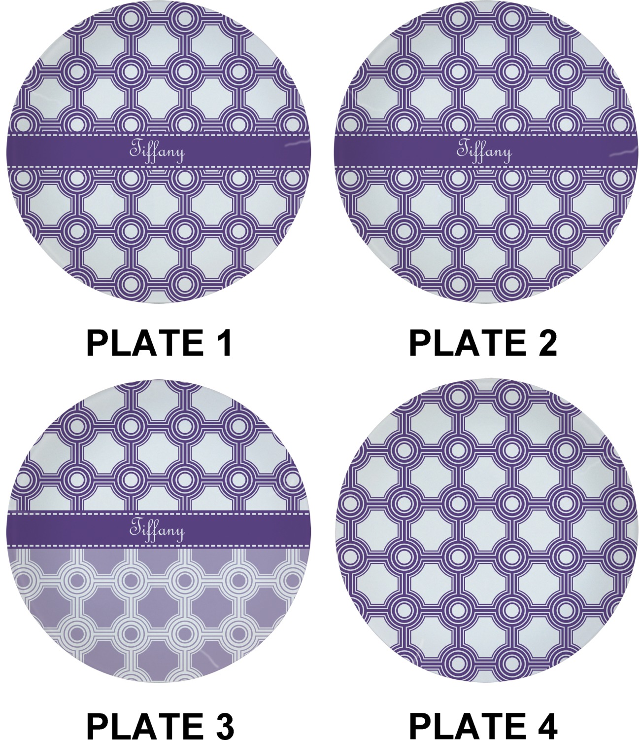 With a of designs and patterns, these plates are completely customizable. Choose a foodie design, complete with red-hot chili peppers, or go classic with stripes or plaid. Include your monogram or family name to make sure these plates never get lost at parties!