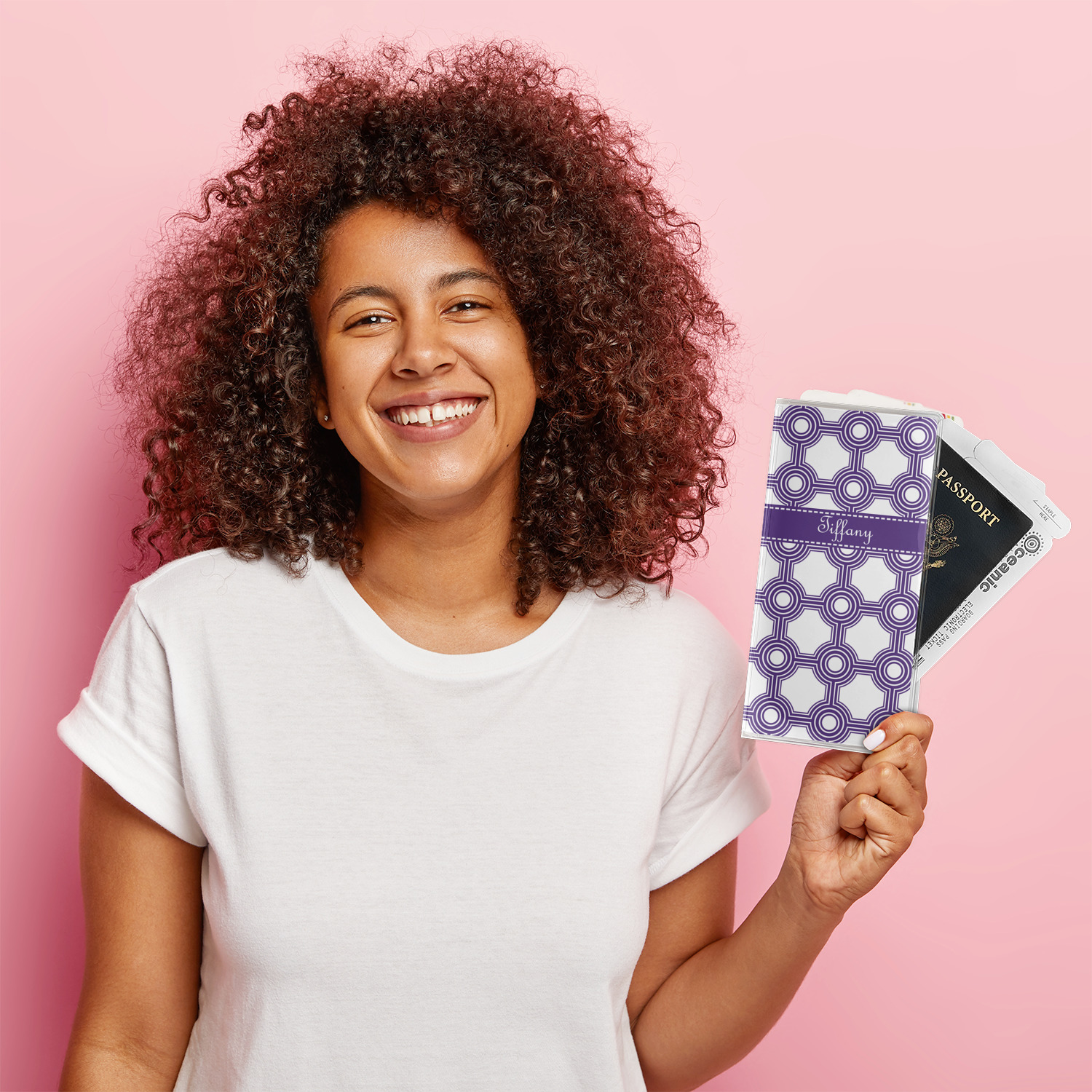 This document holder is really sturdy and has your personalized design inserted right behind all of your nifty pockets, so you can see it on the front and back covers. There are two large pockets and two shorter pockets inside. The larger pockets are tall enough to keep your boarding pass nice and straight. The smaller pockets (on top of the large pockets) are large enough to fit your passport, credit card, or ID.