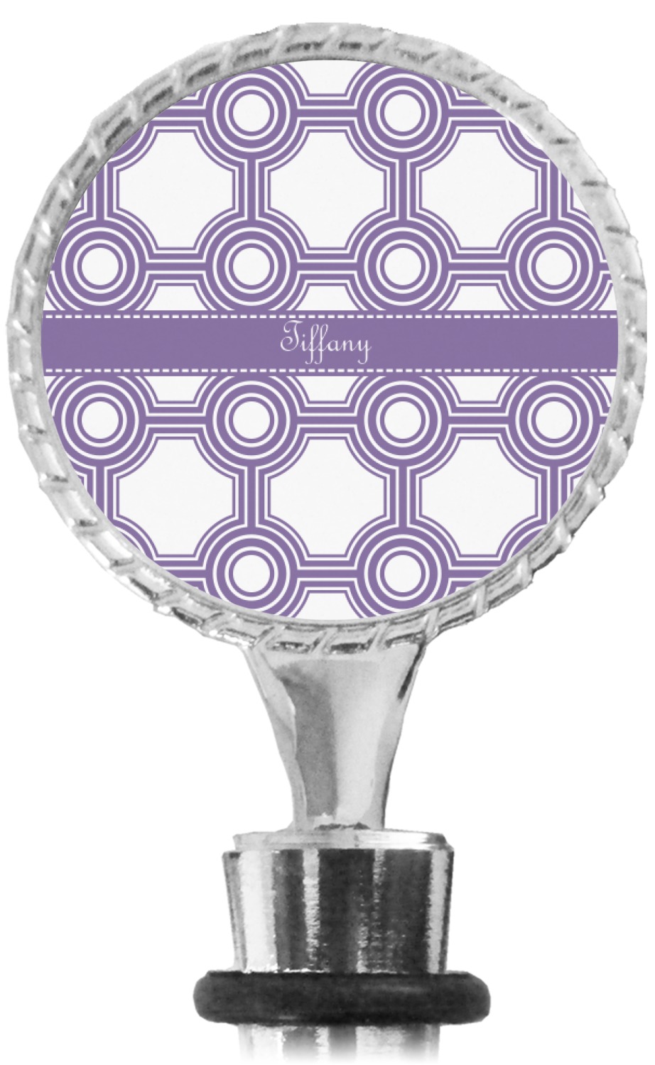 The top part of your bottle stopper is comprised of a zinc ring that displays your customization(s) in its middle, on both sides. The ring is heavy duty, with a bright chrome finish. The body of the wine stoppers have two silicone rings to provide an airtight seal. These wine bottle stoppers measure at 1.625" L x 0.8125" W x 4.625" H; your custom wine stopper is meant to fit into most standard-sized wine bottles.