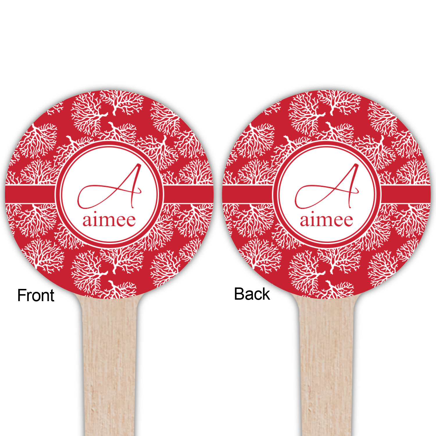 It is available in a choice of background colors. It has a classic ribbon and circle label and personalization is available as initial and name.