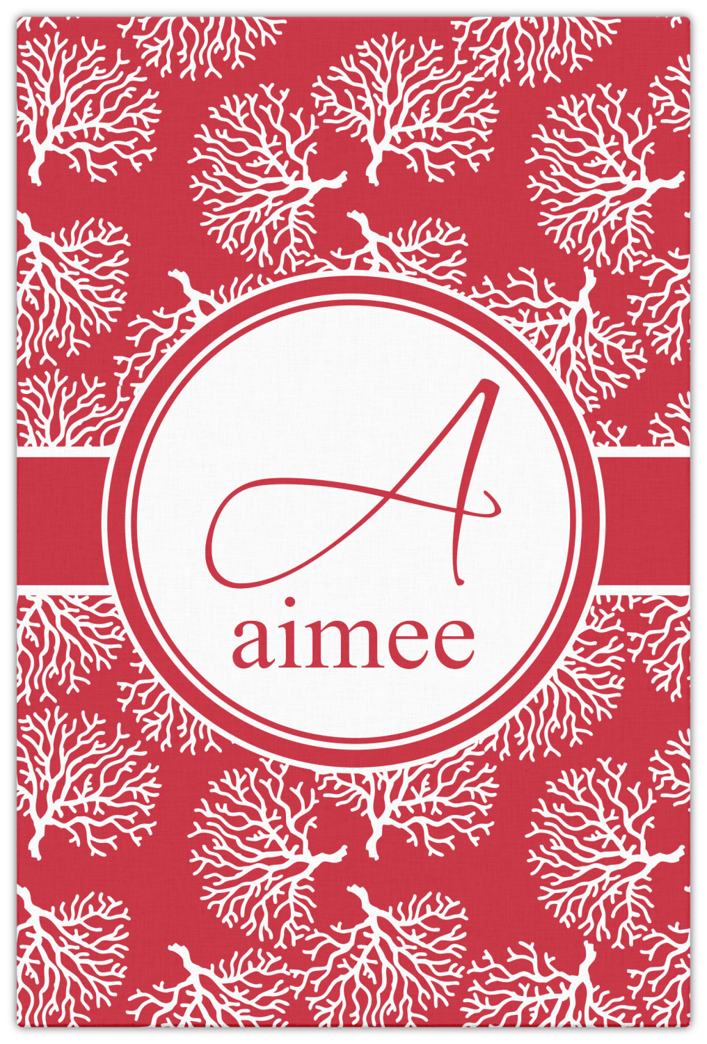 It is available in a choice of background colors. It has a classic ribbon and circle label and personalization is available as initial and name.