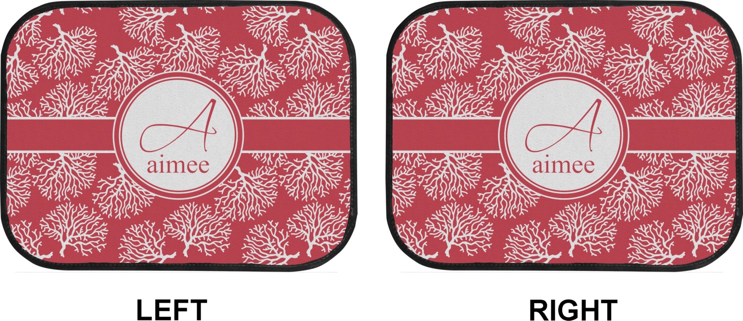 We craft our auto floor mats mats from polyester, apply a black finish to the edges, and lined at the bottom to prevent slippage. These mats protect your floors from grass, mud, and any accidental spills. We display your personalized design on the front face of each mat. The sizes of these car floor liners are standardized to provide a versatile fit for all vehicles. The front rows car mats measure at 17 by 26.5 inches, while the back rows measure at 17 by 13 inches. We sell three packages of car floor mats. You can purchase a pair of front row car mats, a pair of back row car mats, or a set of front row and back row car mats. To make an informed purchase, we recommend measuring the surface area of your car floors.
