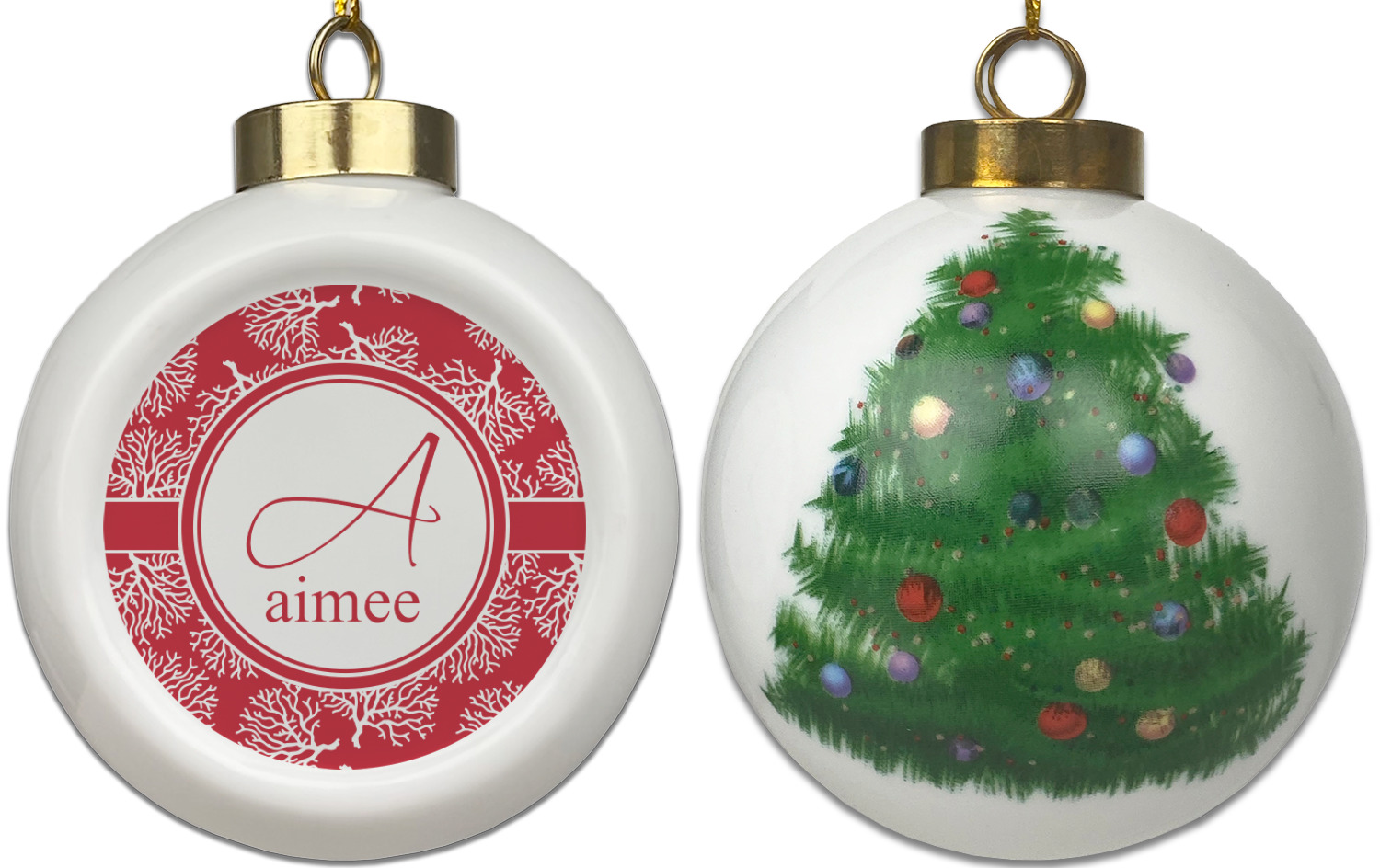 Our Christmas ornaments are a unique ceramic ball shape with a twist as it has a flat face to display your custom design! Select from one of our two design types - Christmas Tree or Poinsettia Garland - to adorn the curved back of your personal design. Each ornament measures 3H x 2.5W x 2D accompanied with a gold string accent for finishing touches to hang on your beautiful Christmas tree!