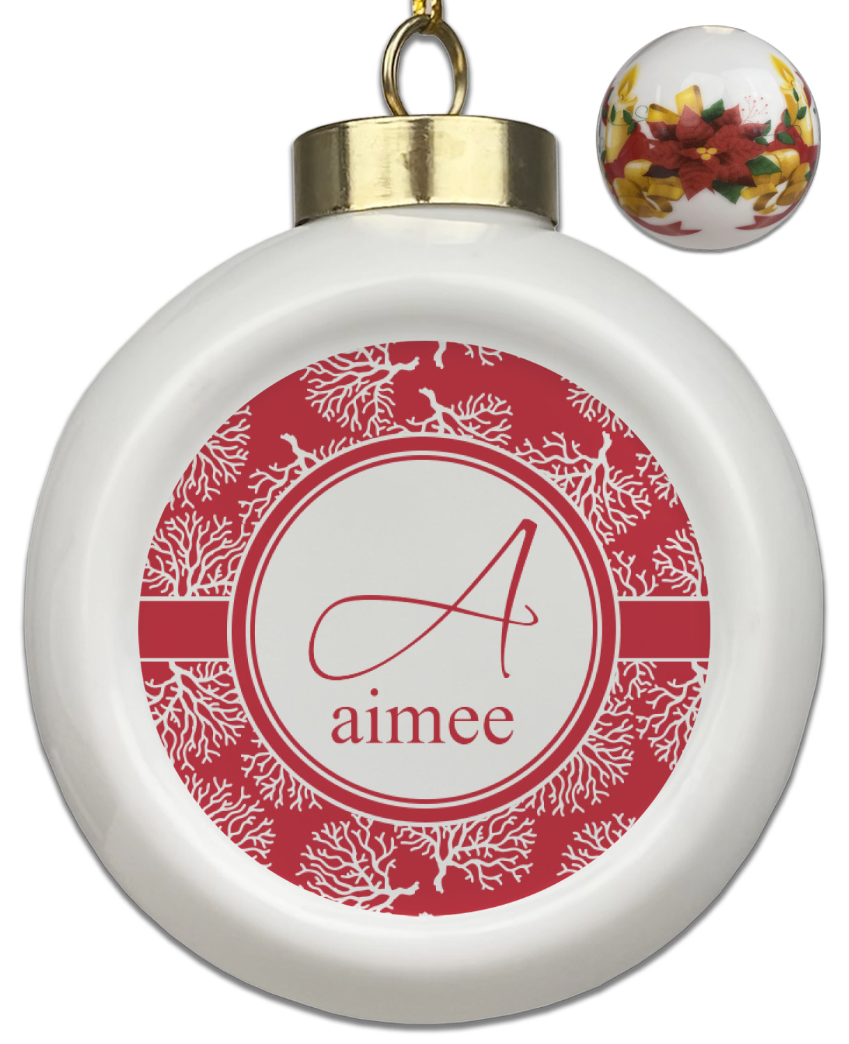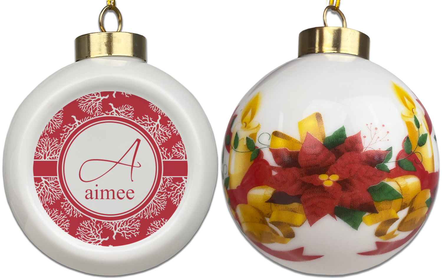 Our Christmas ornaments are a unique ceramic ball shape with a twist as it has a flat face to display your custom design! Select from one of our two design types - Christmas Tree or Poinsettia Garland - to adorn the curved back of your personal design. Each ornament measures 3H x 2.5W x 2D accompanied with a gold string accent for finishing touches to hang on your beautiful Christmas tree!