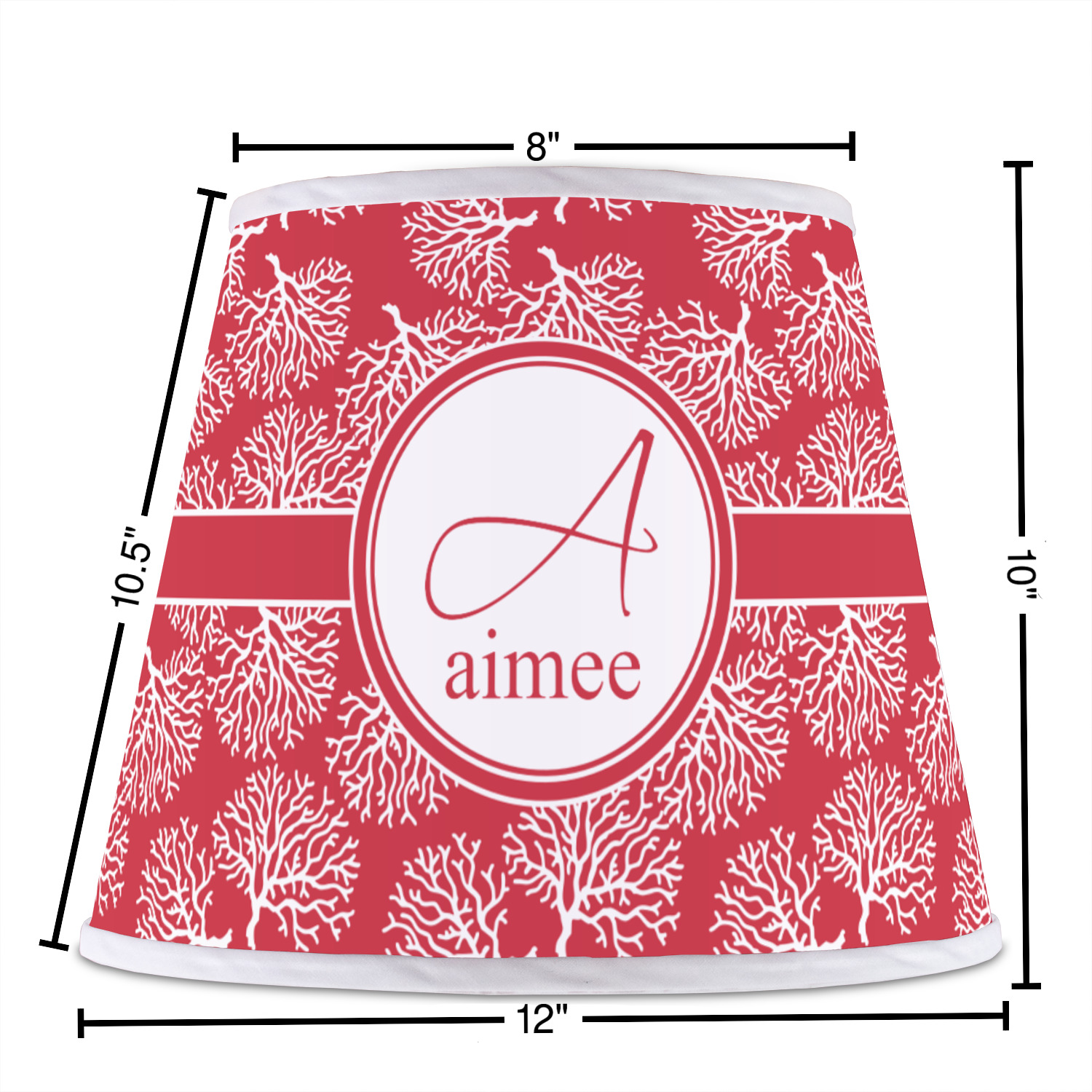 The base of this lampshade is 12 inches in diameter, and the top spans 8 inches in diameter. The total height of the lampshade is 10 inches. The angled nature of this custom lampshade concentrates the light, making it ideal for smaller spaces. This lampshade is made of matte, polyfilm, and displays your customization in its middle. The top and bottom of this colorful lamp shade are lined with a white fabric ribbon (which can be replaced with black inside the design studio) which frames your design and creates a sophisticated finish. As an UNO fitter lampshade, this unique lamp shade will fit a variety of bases.