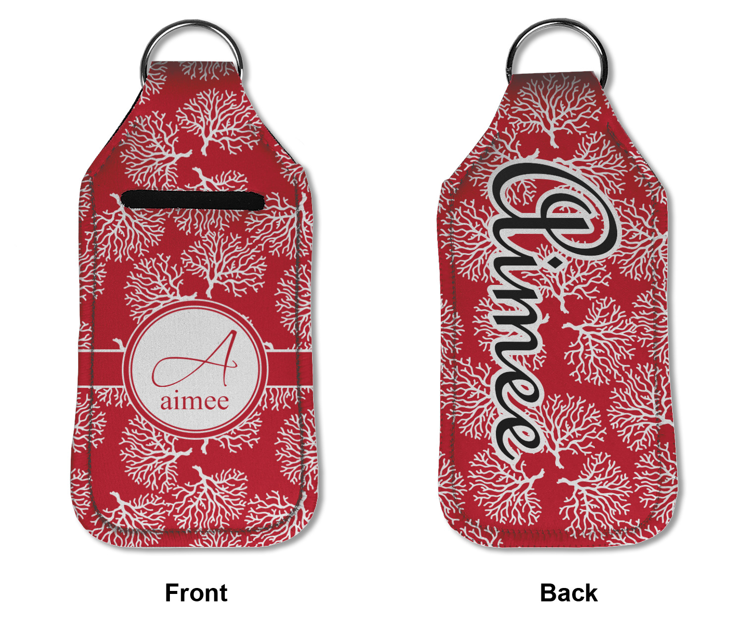 Each hand sanitizer holder comes with its own empty travel-sized, refillable hand sanitizer sure to fit snug in your customized sanitizer case! Our hand sanitizer cases are a durable, yet soft neoprene material sure to last any daily activities or travel agenda. Customize and personalize a hand sanitizer bottle holder with one of our two sizes - small (4.25" x 2.25") or large (5.5" x 2.5"). Each travel sanitizer holder comes with a keyring for attachment on bags, keys, or more!
