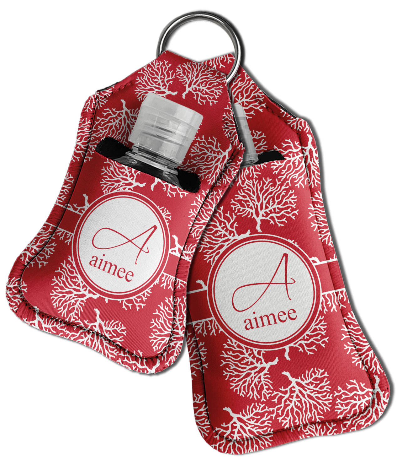 Each hand sanitizer holder comes with its own empty travel-sized, refillable hand sanitizer sure to fit snug in your customized sanitizer case! Our hand sanitizer cases are a durable, yet soft neoprene material sure to last any daily activities or travel agenda. Customize and personalize a hand sanitizer bottle holder with one of our two sizes - small (4.25" x 2.25") or large (5.5" x 2.5"). Each travel sanitizer holder comes with a keyring for attachment on bags, keys, or more!
