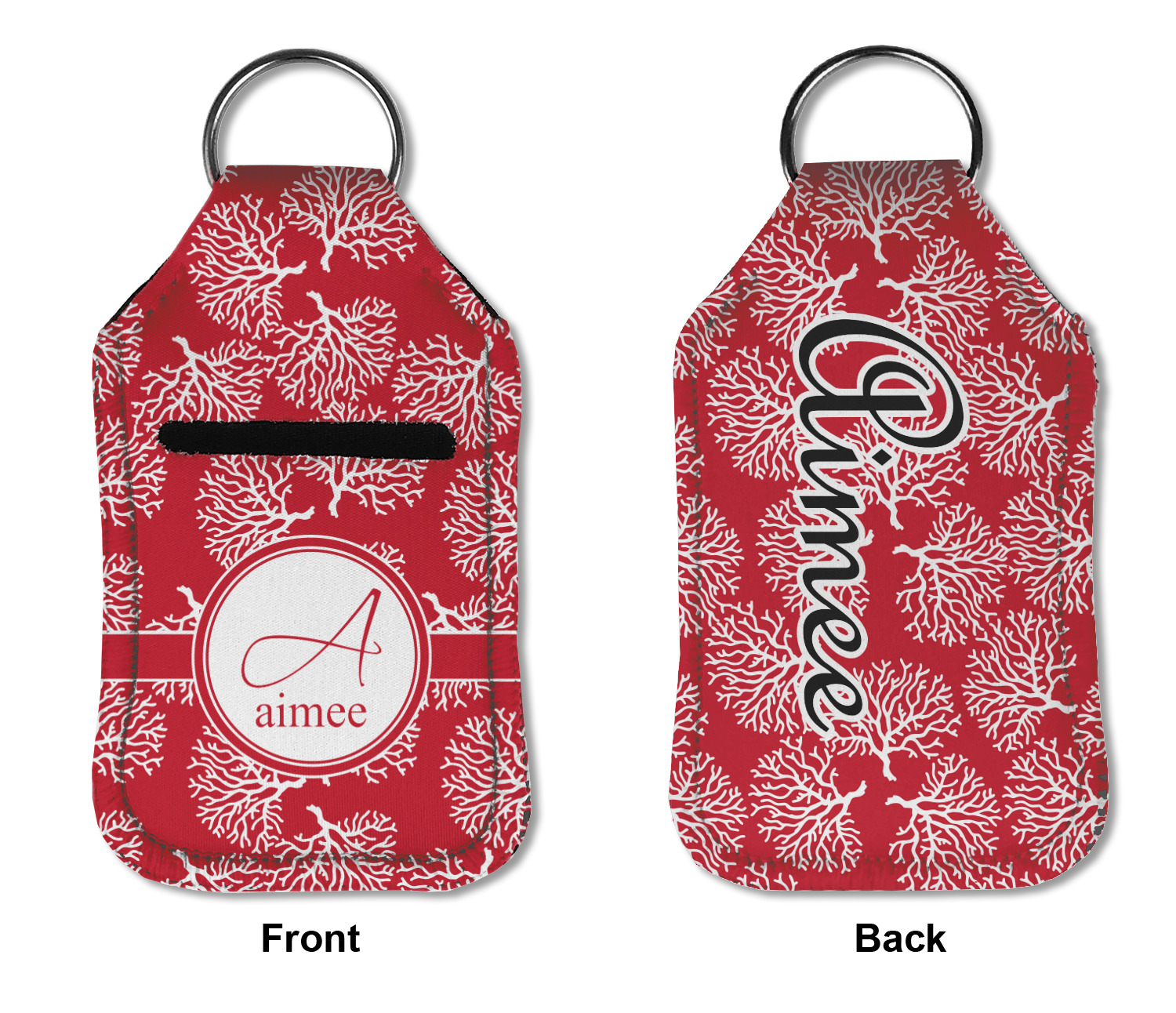 Each hand sanitizer holder comes with its own empty travel-sized, refillable hand sanitizer sure to fit snug in your customized sanitizer case! Our hand sanitizer cases are a durable, yet soft neoprene material sure to last any daily activities or travel agenda. Customize and personalize a hand sanitizer bottle holder with one of our two sizes - small (4.25" x 2.25") or large (5.5" x 2.5"). Each travel sanitizer holder comes with a keyring for attachment on bags, keys, or more!