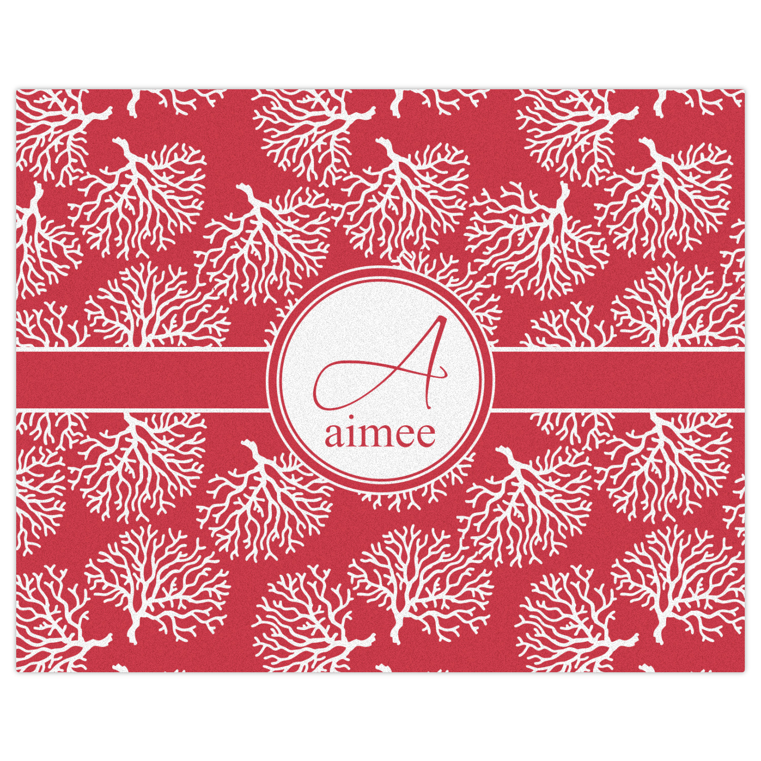 It is available in a choice of background colors. It has a classic ribbon and circle label and personalization is available as initial and name.