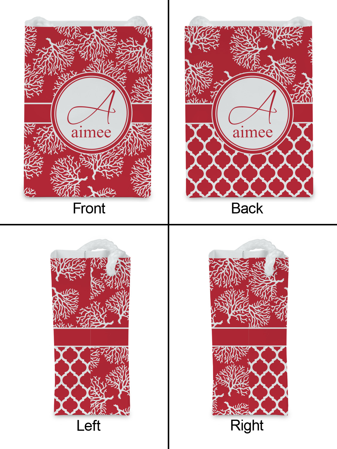 You can design a your gift bag by customizing one of our design templates. Our design studio enables you to customize your design - you can change any part of the design template. You can also upload a photo, logo or any image.