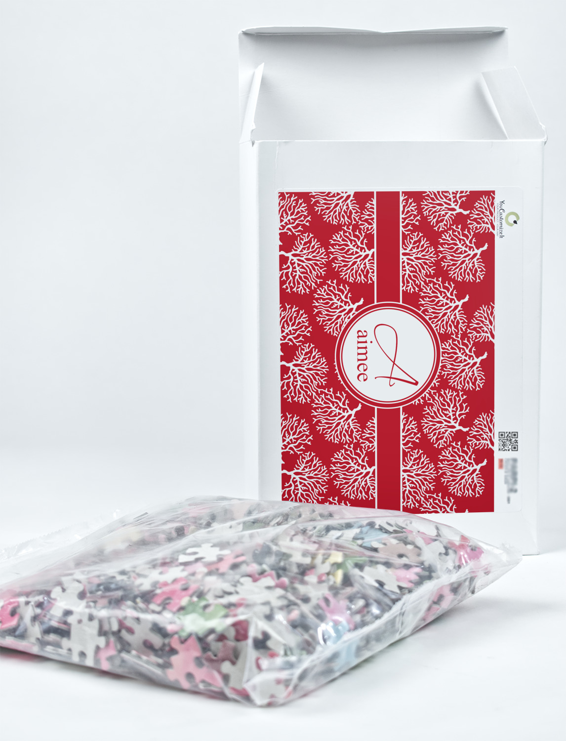 You can also upload your logo or art that you or your kids drew. To create more challenging jigsaw puzzles, you can create a pattern from with your logo or artwork. You can also add other elements such as text or personalization.