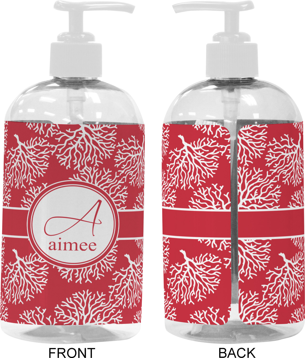 We adhere and wrap your custom printed design around the clear plastic bottle; there is a slight gap at the back for you to see the liquid level. Your design is printed on high gloss vinyl with eco-solvent inks and completely waterproof and will not fade or deteriorate over time. The vinyl is machine cut and adhered by hand to the clear plastic bottle.