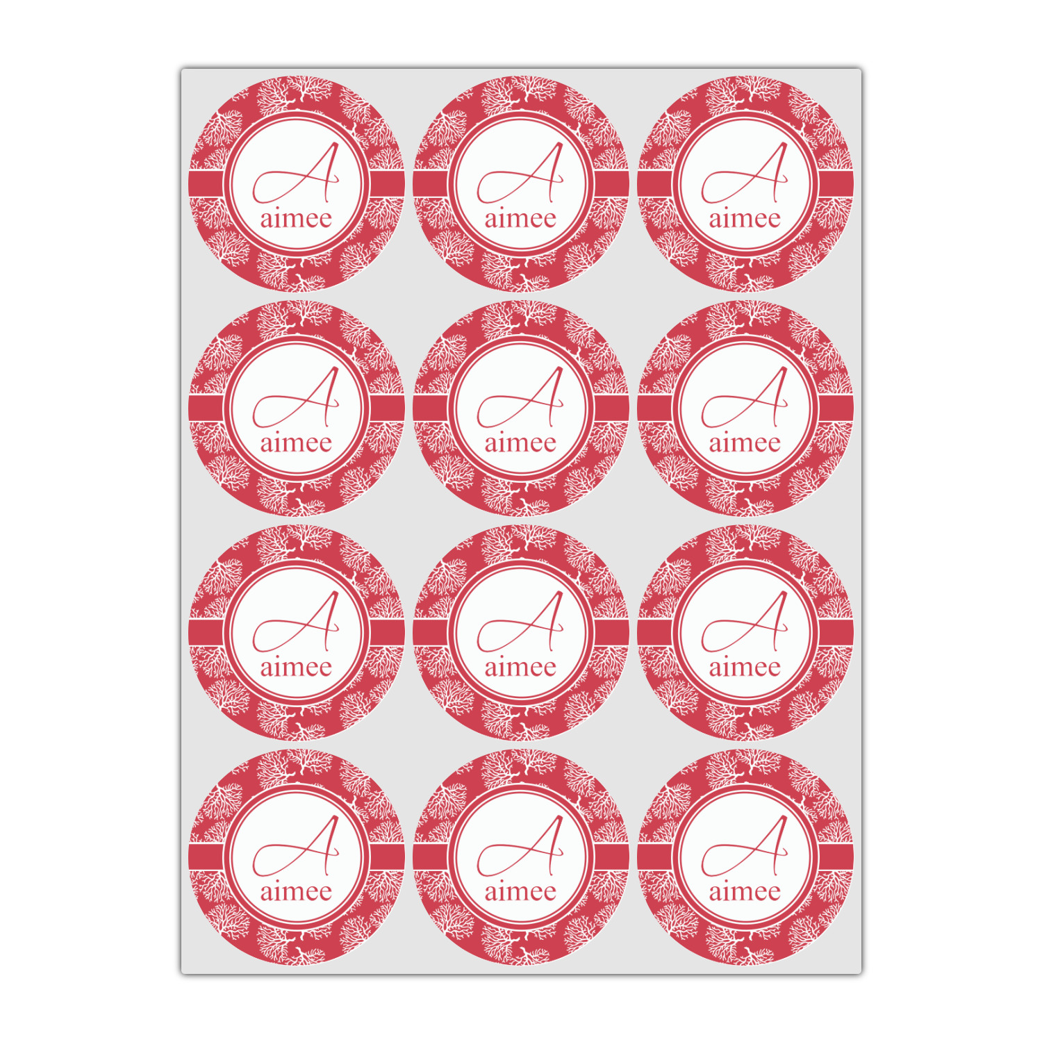 It is available in a choice of background colors. It has a classic ribbon and circle label and personalization is available as initial and name.