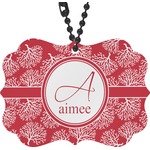 It is available in a choice of background colors. It has a classic ribbon and circle label and personalization is available as initial and name.