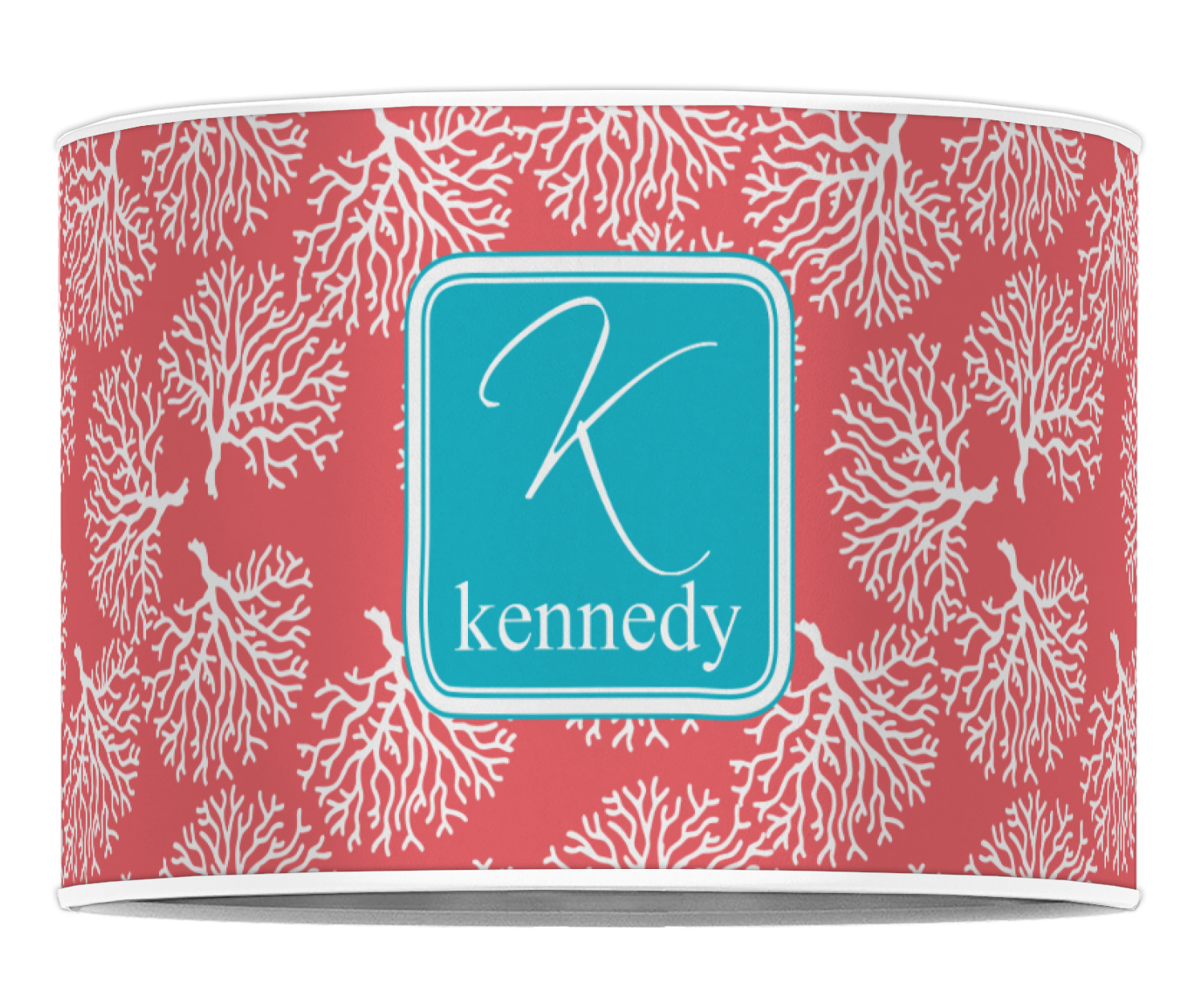 The coral background in this design is absolutely beautiful. The square label highlights the personalization of an initial and name of your choice in the stunning teal blue color.
