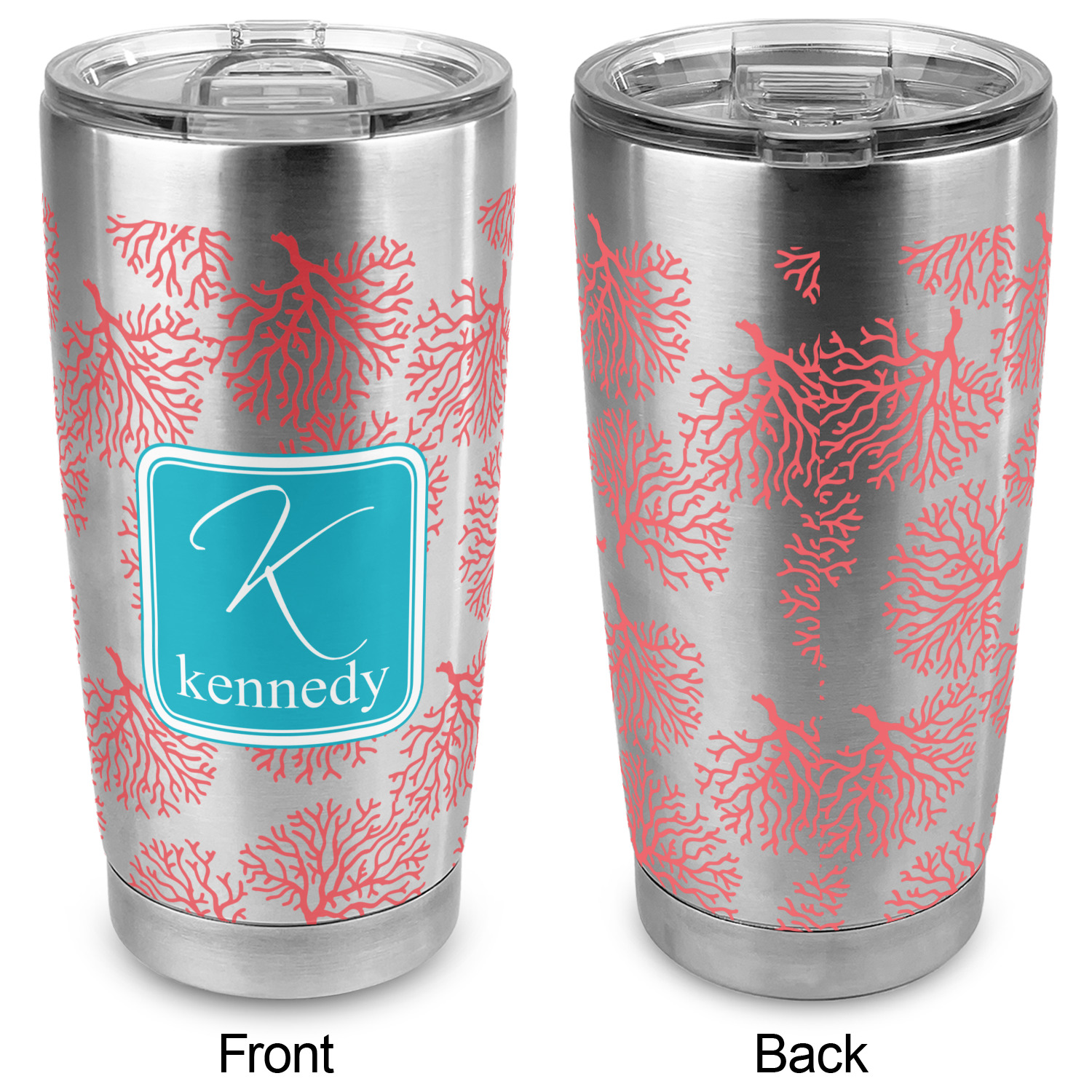 Made from a 20oz vacuum insulated stainless steel tumbler, these cups are perfect or cold or hot drinks. Standing at 6.75in tall, and 3.25in diameter (at the top) and 2.75in diameter at the base - these metal cups are perfect to fit in just about any cupholder for that on the go lifestyle.