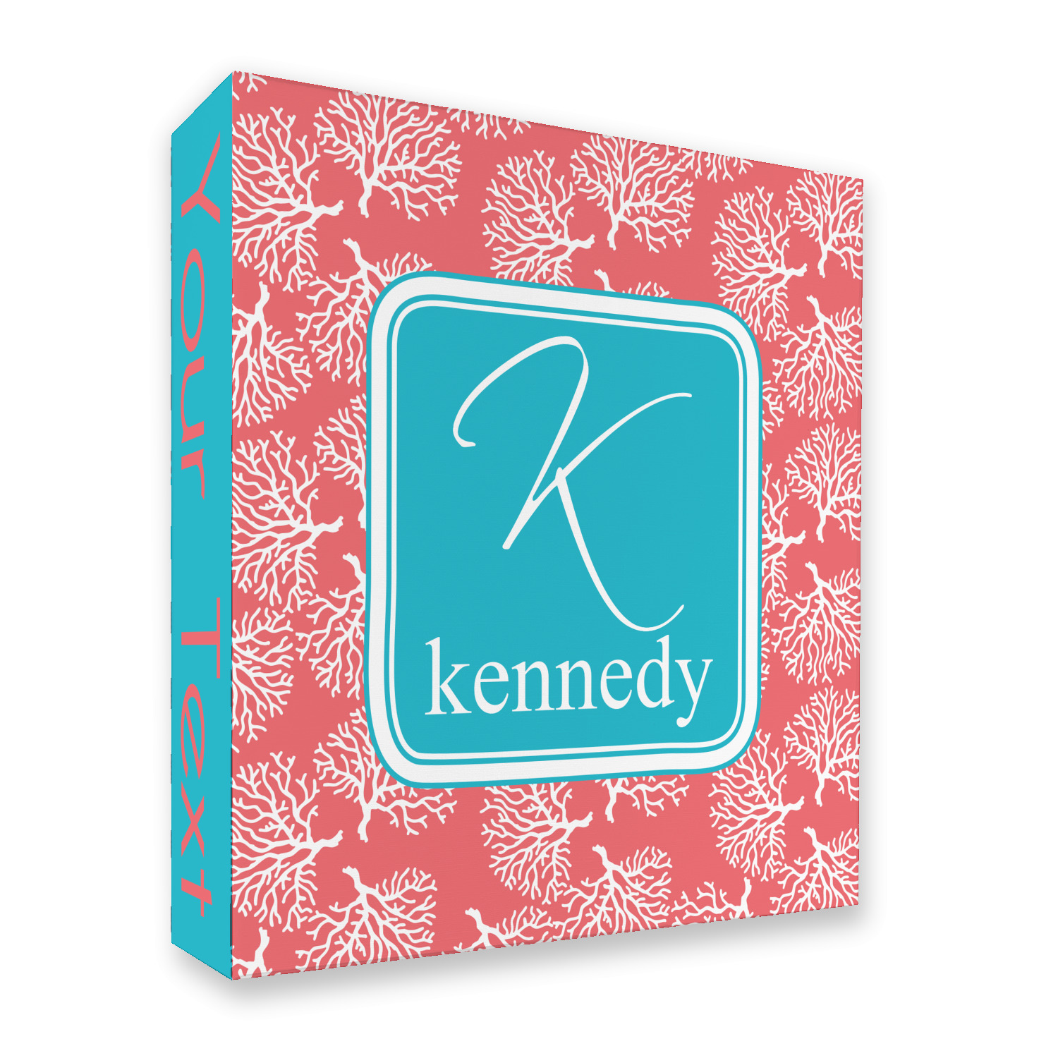 The coral background in this design is absolutely beautiful. The square label highlights the personalization of an initial and name of your choice in the stunning teal blue color.