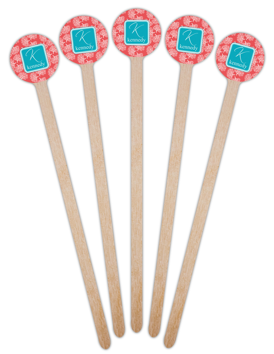 Coastal / Beach Style Designs for 7.5" Round Wooden Stir Sticks - Single-Sided
