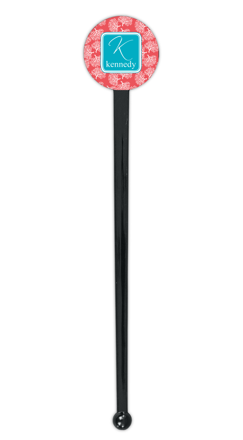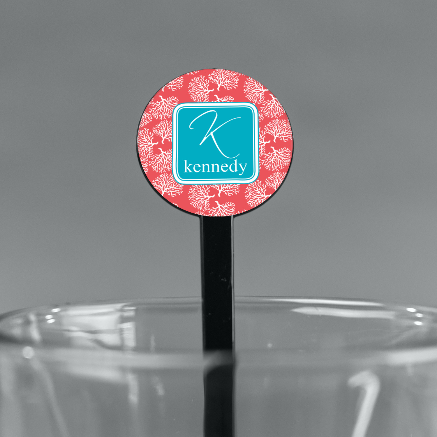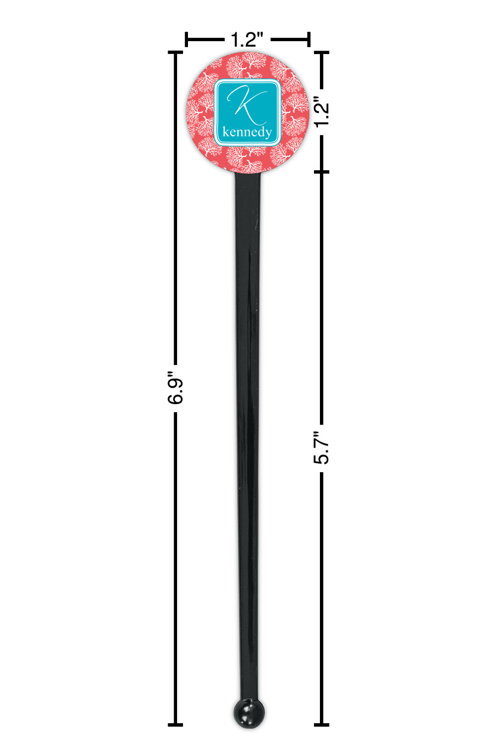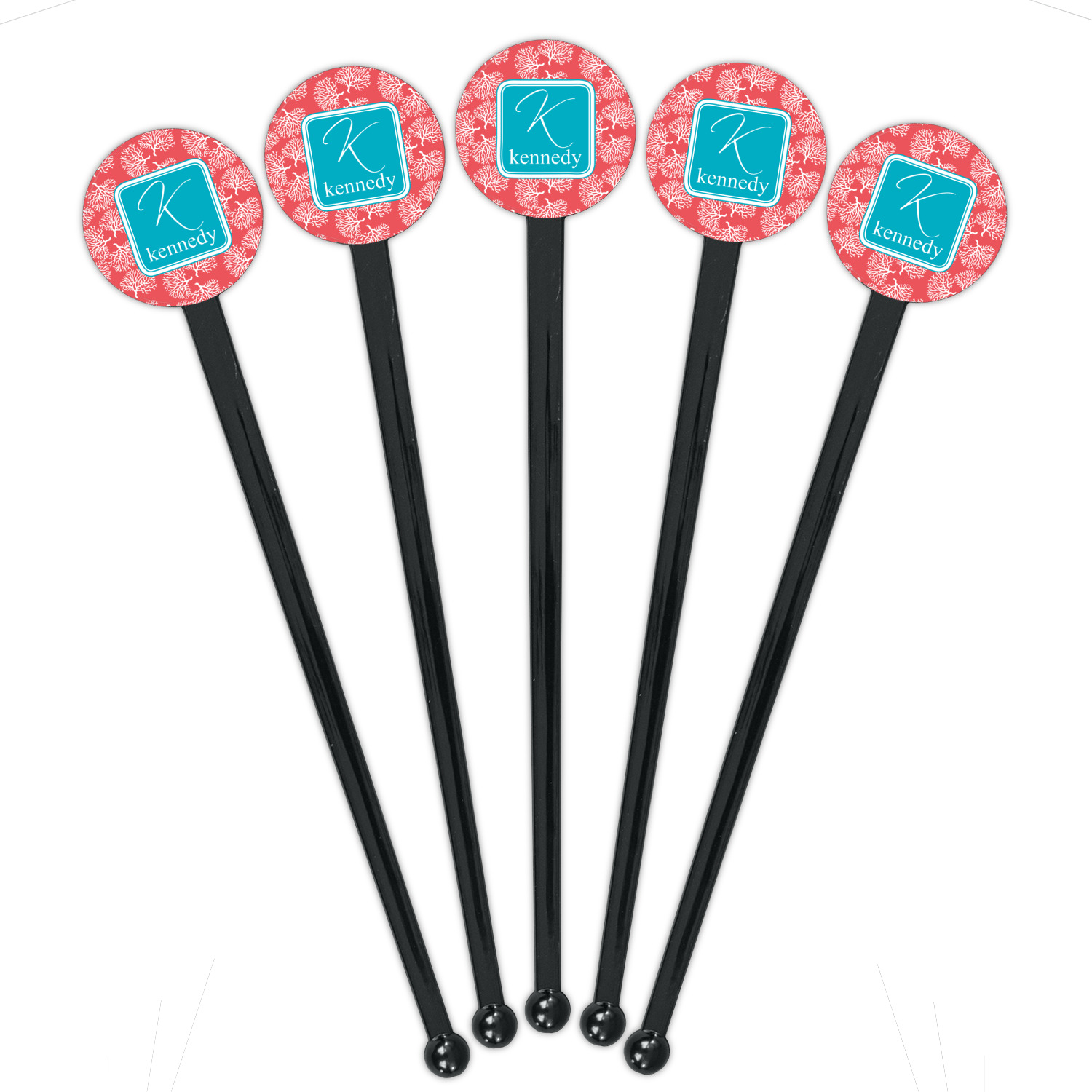 Coastal / Beach Style Designs for 7" Round Plastic Stir Sticks - Black - Single-Sided
