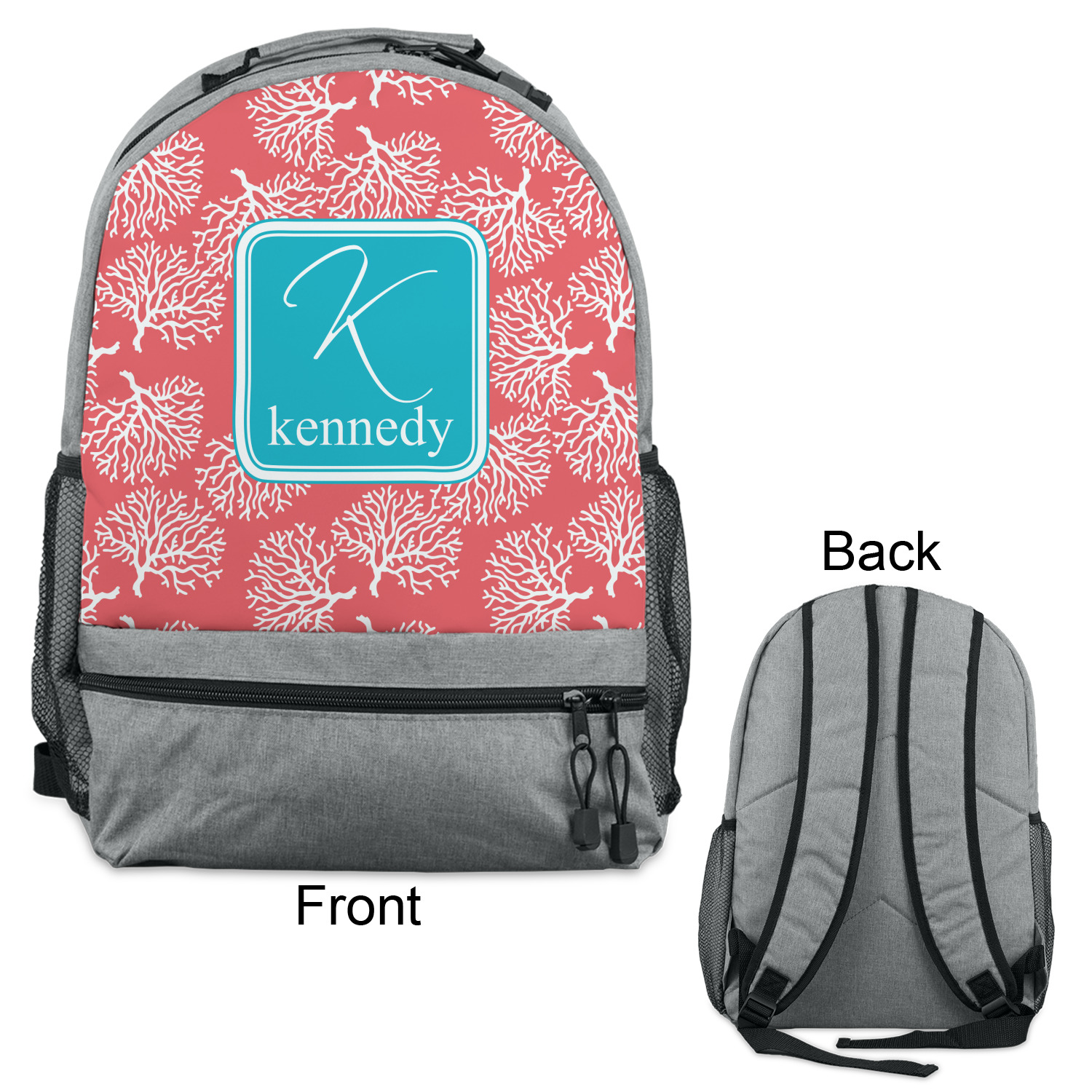 The coral background in this design is absolutely beautiful. The square label highlights the personalization of an initial and name of your choice in the stunning teal blue color.