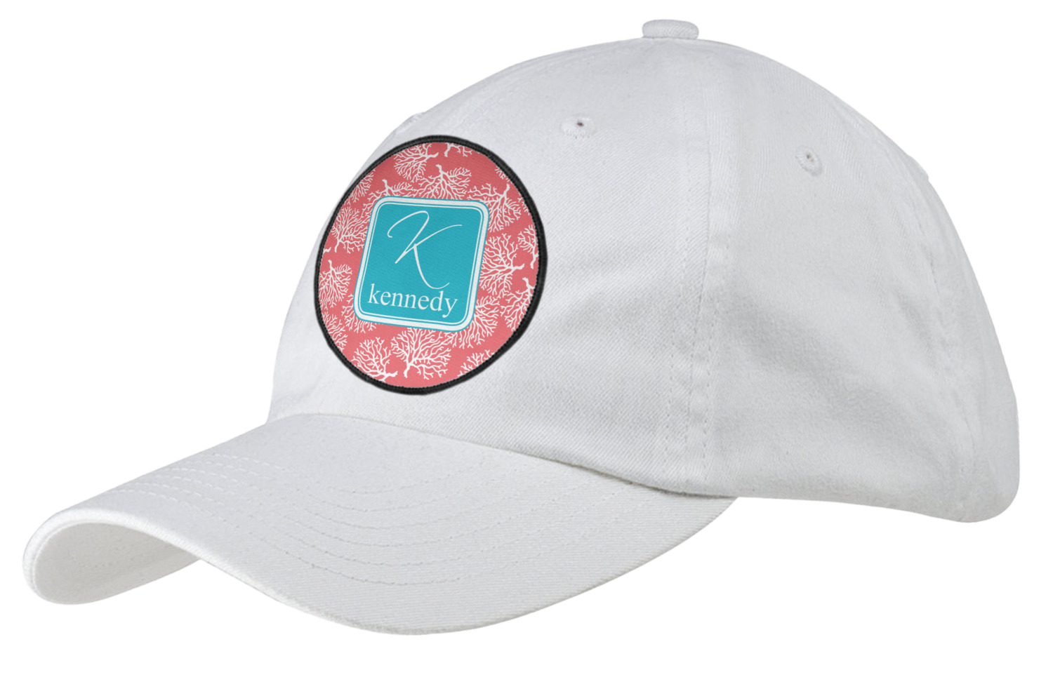The coral background in this design is absolutely beautiful. The square label highlights the personalization of an initial and name of your choice in the stunning teal blue color.