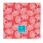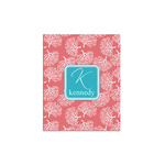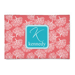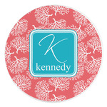 The coral background in this design is absolutely beautiful. The square label highlights the personalization of an initial and name of your choice in the stunning teal blue color.