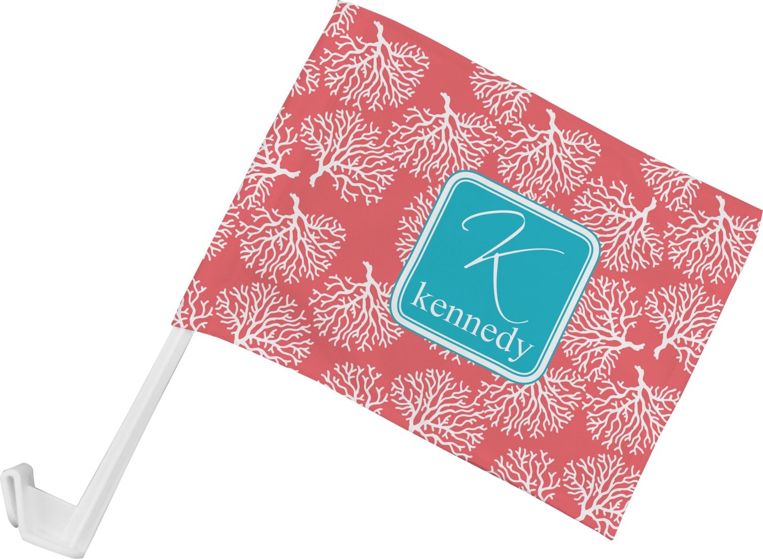 Our personalized flags are made from a durable, yet lightweight cloth that will proudly bear your logo or design of choice, while withstanding the outside elements. We have two size options - 8" x 11" and 11" x 15". Both come with a flag pole which includes a clip that secures the pole to the side window, whether it is rolled up or down. The flags are printed on both sides to display your design from all directions.