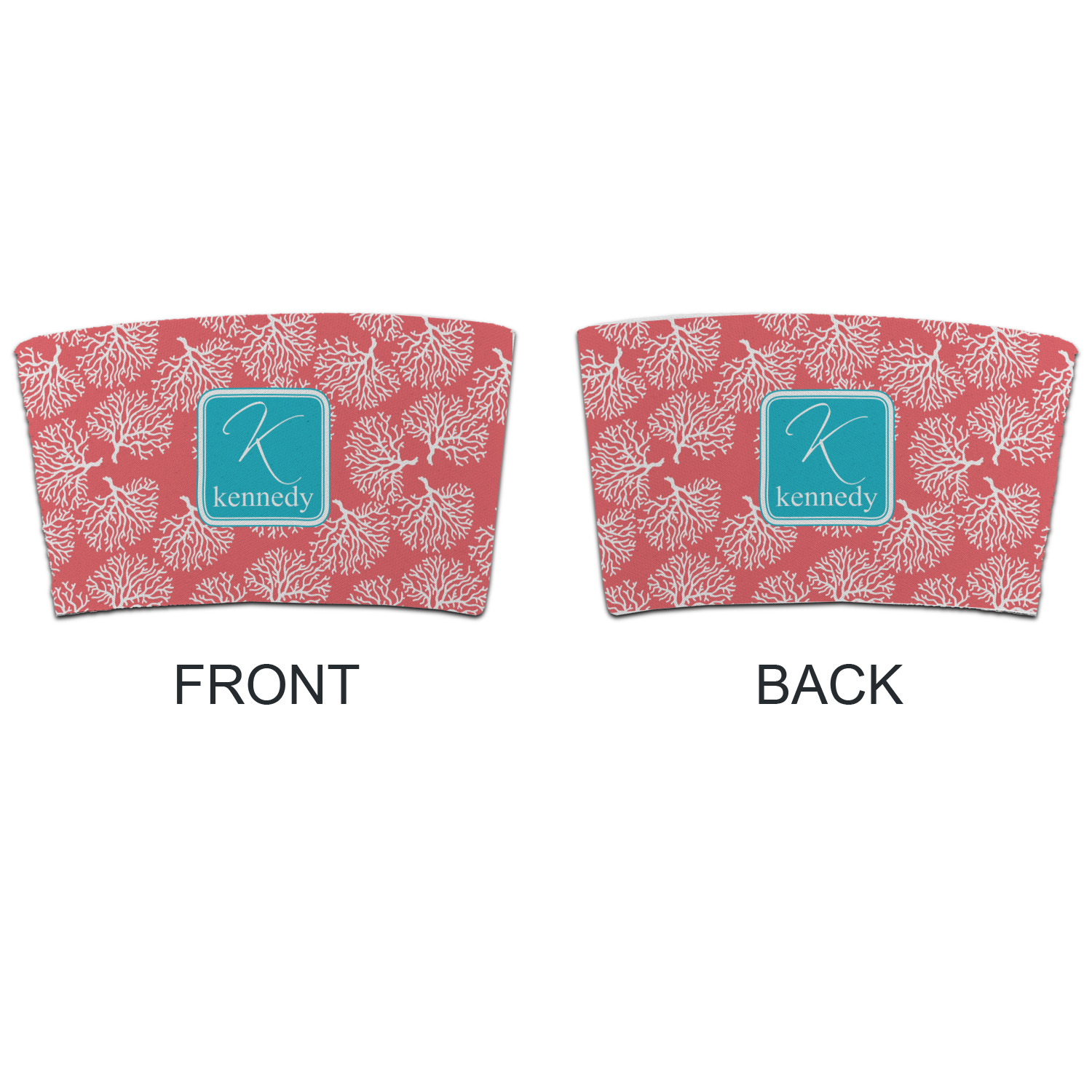 The coral background in this design is absolutely beautiful. The square label highlights the personalization of an initial and name of your choice in the stunning teal blue color.