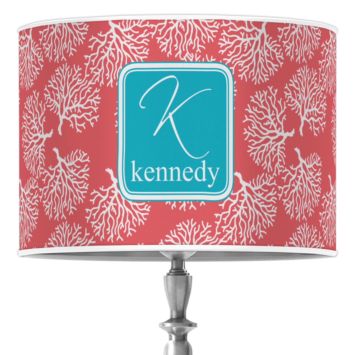 The coral background in this design is absolutely beautiful. The square label highlights the personalization of an initial and name of your choice in the stunning teal blue color.