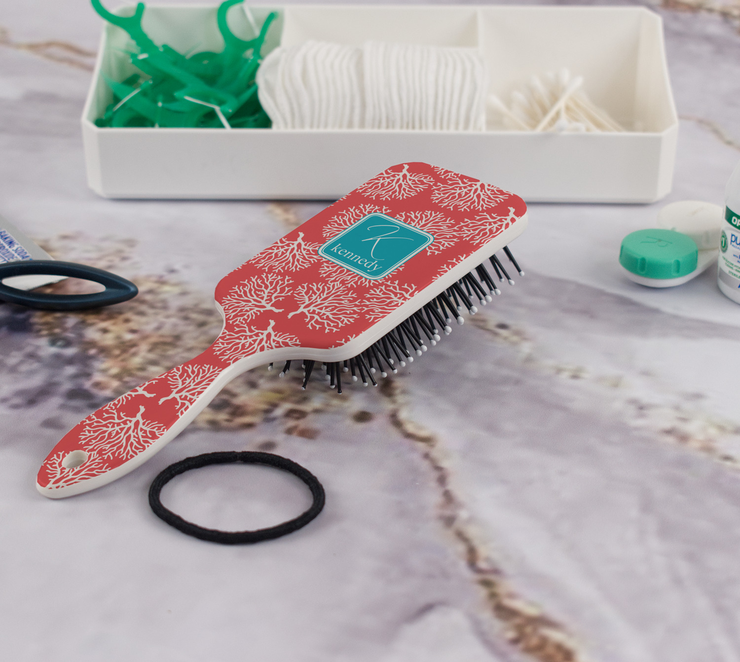 Our paddle style customizable hair brushes are perfect for all hair types- straight, curly, wavy, long, short, thick or textured.