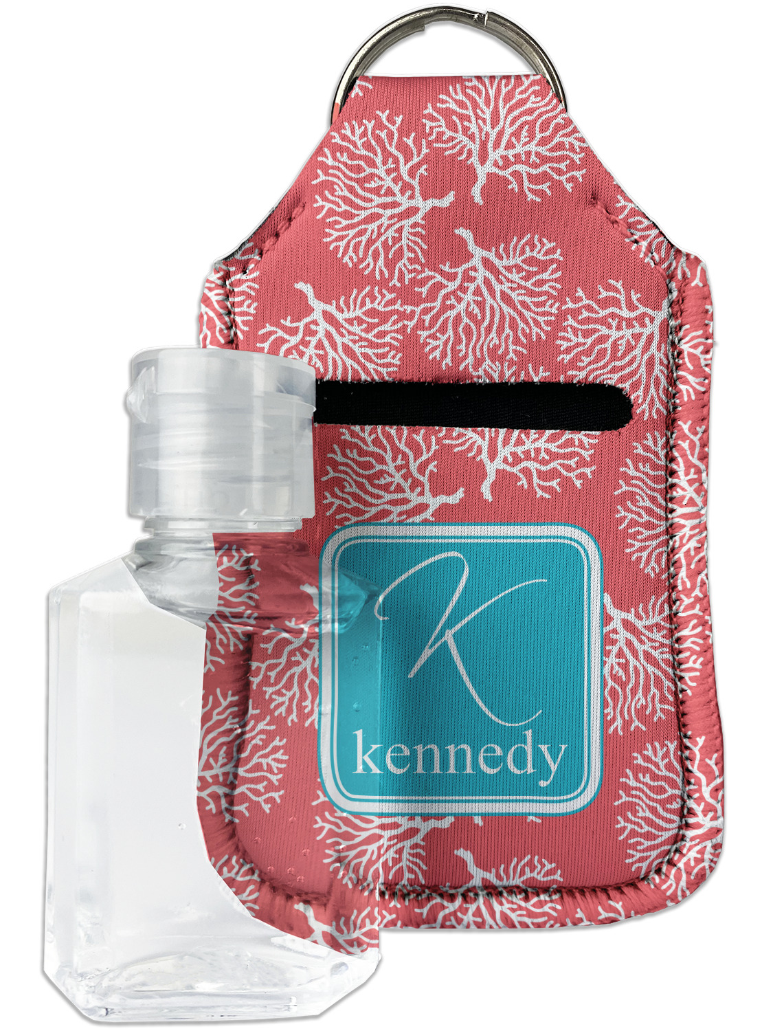 Each hand sanitizer holder comes with its own empty travel-sized, refillable hand sanitizer sure to fit snug in your customized sanitizer case! Our hand sanitizer cases are a durable, yet soft neoprene material sure to last any daily activities or travel agenda. Customize and personalize a hand sanitizer bottle holder with one of our two sizes - small (4.25" x 2.25") or large (5.5" x 2.5"). Each travel sanitizer holder comes with a keyring for attachment on bags, keys, or more!