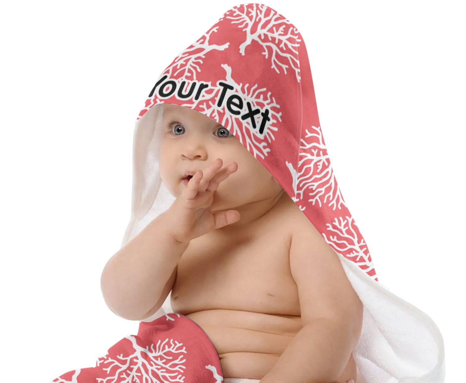 This baby towel is made with a plush microfiber velour and cotton terry. and thus will be soft and gentle against your newborn's skin, but also, very absorbent. Your customization is printed across the front & the hood, while the inside is a classy white.