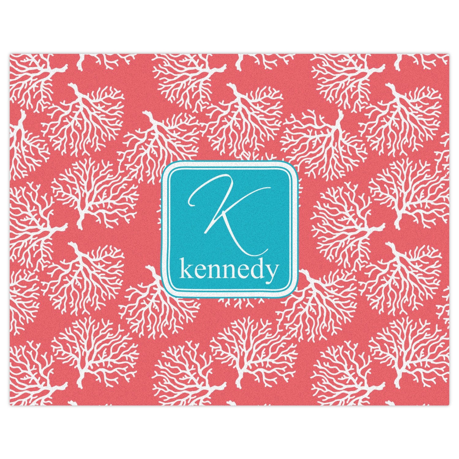 The coral background in this design is absolutely beautiful. The square label highlights the personalization of an initial and name of your choice in the stunning teal blue color.
