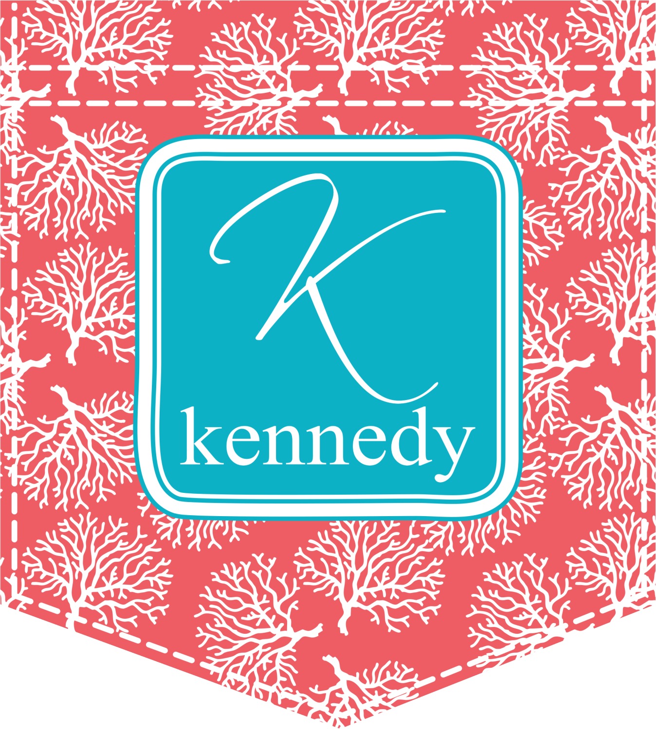 The coral background in this design is absolutely beautiful. The square label highlights the personalization of an initial and name of your choice in the stunning teal blue color.