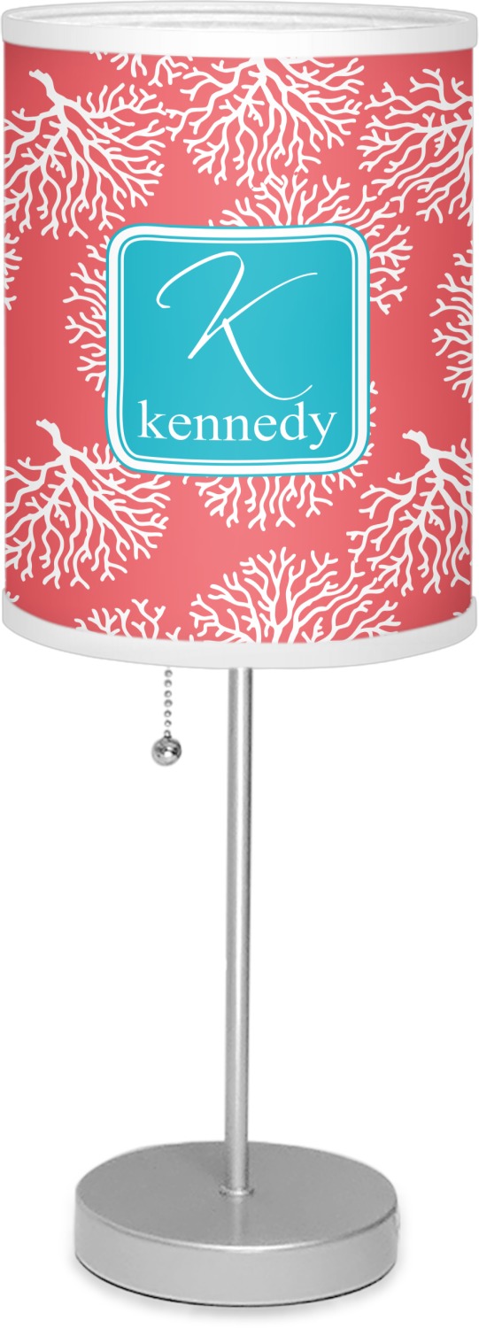 The coral background in this design is absolutely beautiful. The square label highlights the personalization of an initial and name of your choice in the stunning teal blue color.